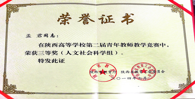 课程负责人:孟君教授 陕西省教学名师 陕西省师德标兵