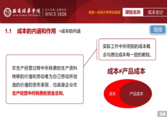 《成本会计》课程是我校会计学专业开设的专业课,48学时,3学分。该课程主要为学生提供工业企业产品成本核算的知识与技能,并能使相关的专业基础课和专业课在应用中得到加强、巩固和提高,是学生从学校所学理论走向社会从事会计实践的一个必修课程,它在财会专业所开设课程中起着无可替代的综合性作用。2015年获批“陕西省精品资源共享课”;2019年获批“陕西省线上线下混合式一流本科课程”。