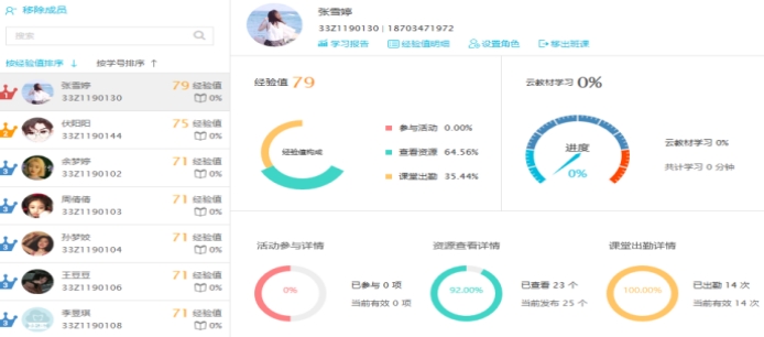 (2)“蓝墨云班课”软件的广泛使用。每学期伊始,任课教师创建班课,填写班课的基础信息。通过云班课的使用,教师最终可以获取每个教学班的数据信息:成绩汇总,总经验值,签到,视频资源学习,非视频资源学习,课堂表现,讨论答疑,头脑风暴,测试,小组任务。学生可以根据云班课软件发布的资料包,参与活动并提交指定的任务安排,增强其动手操作的实践能力。