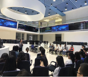 金融交易与云财务中心创建于2017年,面积为2000平方米,整体建筑风格仿照纽约证券交易所进行设计,中心配有四屏工作站60余台,装有最先进的证券交易模拟软件、财务会计软件等,并接入了海外光纤专线,长达16米的巨幅液晶显示屏显示着国内外证券交易市场适时高频数据行情。主要面向金融工程、会计学、财务管理等专业的学生提供金融分析、金融交易软件操作、金融数据建模、证券量化投资等综合模拟实训,根据国内外金融机构的人才需求,培养具有全球金融实操技能和涉足全球投资领域真实业务的应用型人才。