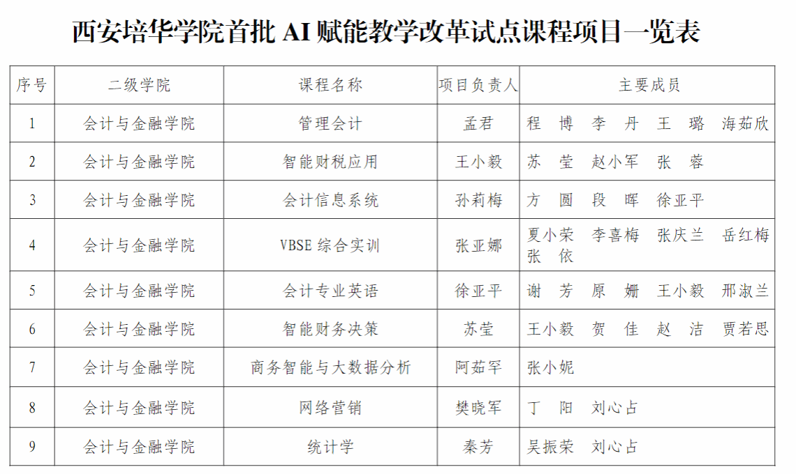 多门课程获批“西安培华学院首批AI赋能教学改革试点课程”项目。