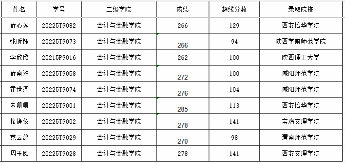 2025届大数据与会计专业一共 3 个班,97人升本,上线率为94.85%,录取84人,200分以上52人,250分以上18人,公办大学录取20人。其中报考学生全部录取的宿舍7间,大数据与会计2201 班共 49 人,2201 班 36 人报考,36 人均过线,34人被录取,2人没有填报志愿放弃入学。