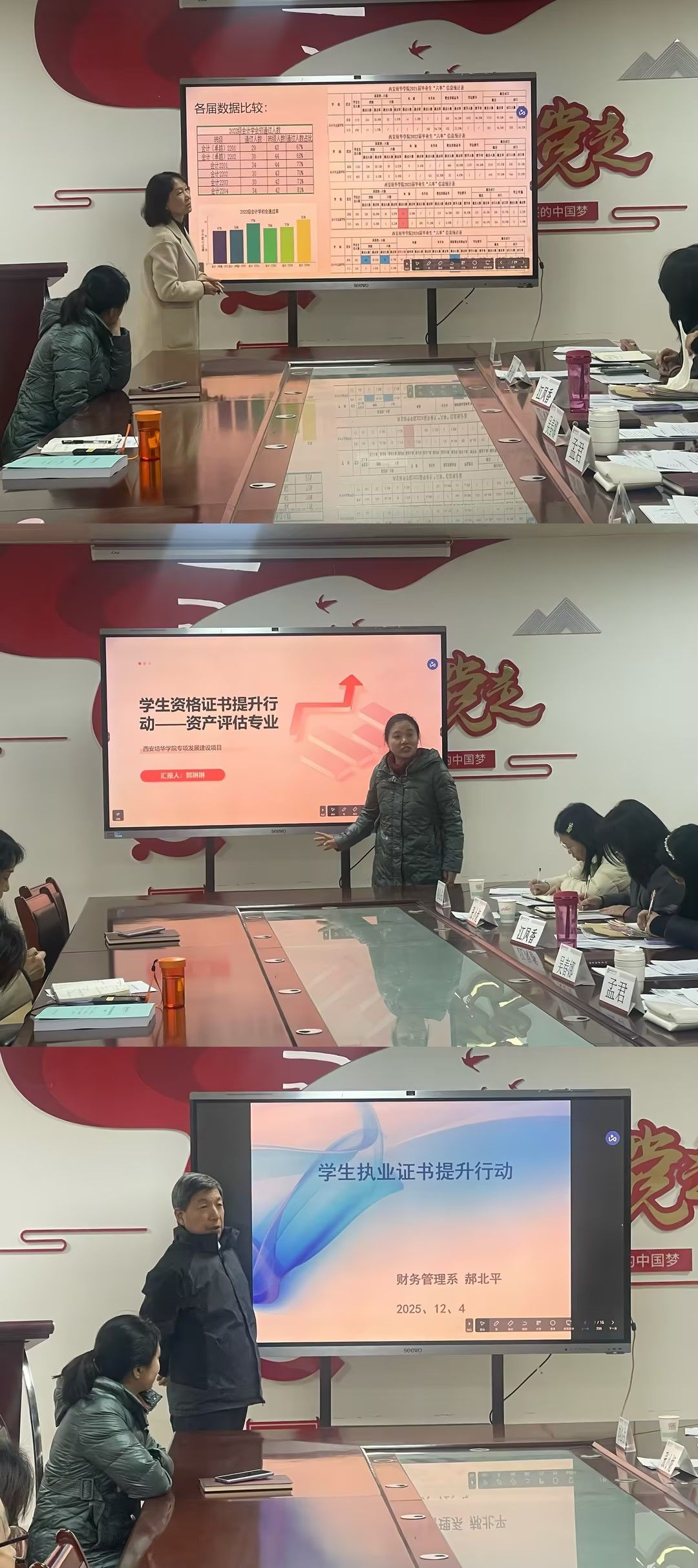 为深入推进教学质量提升与特色发展,会计与金融学院于2025年12月3日至4日,在学院2115会议室组织召开了为期两天的教学专项结项评审会议。本次会议特邀教务管理中心副主任王琳、西安金泽财务咨询管理策划有限公司总经理卢玲玲担任评审专家。会议分别围绕“产教融合、特色发展、虫颜项目”与“学生成果、实验实践”等主题展开,对学院承担的各类教学改革与建设项目进行了集中评审与验收。