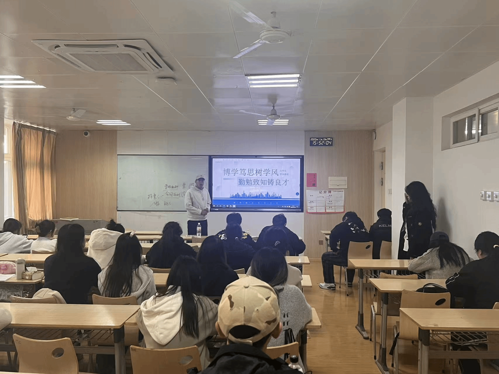 在各班班会上,辅导员首先围绕学风建设的重要意义展开讲解,引导学生深刻认识到,优良学风不仅关乎个人成长与未来发展,更是班级凝聚力、竞争力和整体精神风貌的集中体现。结合学校相关政策与当前学情实际,老师们通过详实的数据和生动的案例,帮助同学们进一步明确学习目标,激发内生动力,为班会的顺利开展奠定了坚实的思想基础。