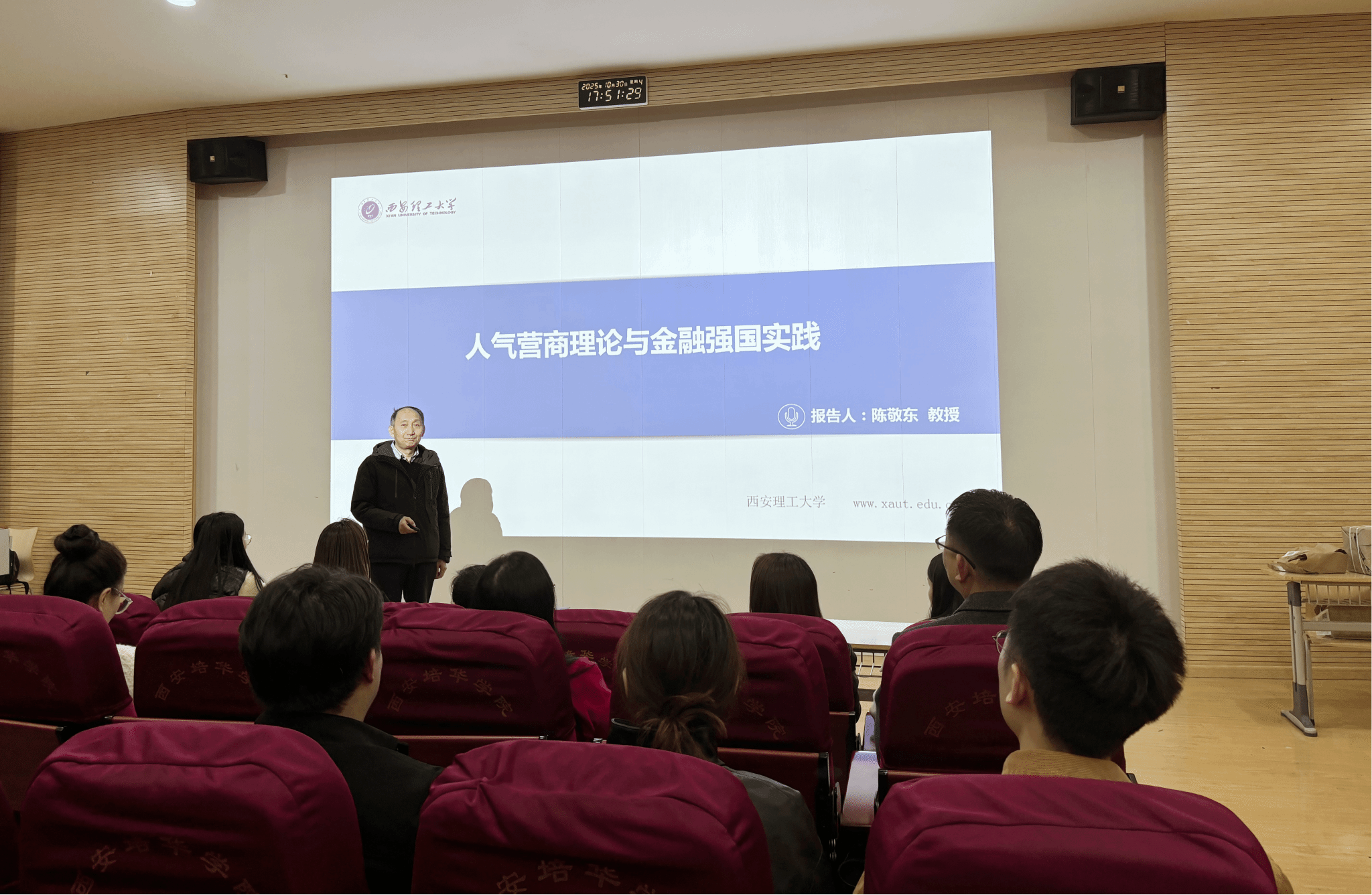 在当前全球经济格局深刻变革、我国经济迈向高质量发展新阶段的关键时期,如何通过理论创新引领发展实践,成为学界与实务界共同关注的焦点。为了让学生全面了解这一时代命题,会计与金融学院数智经济系2025年10月30日16:00——18:00在J202举办了人气营商理论与金融强国实践的学术报告。报告邀请西安理工大学管理学博士陈敬东教授,数智经济系全体师生参加。