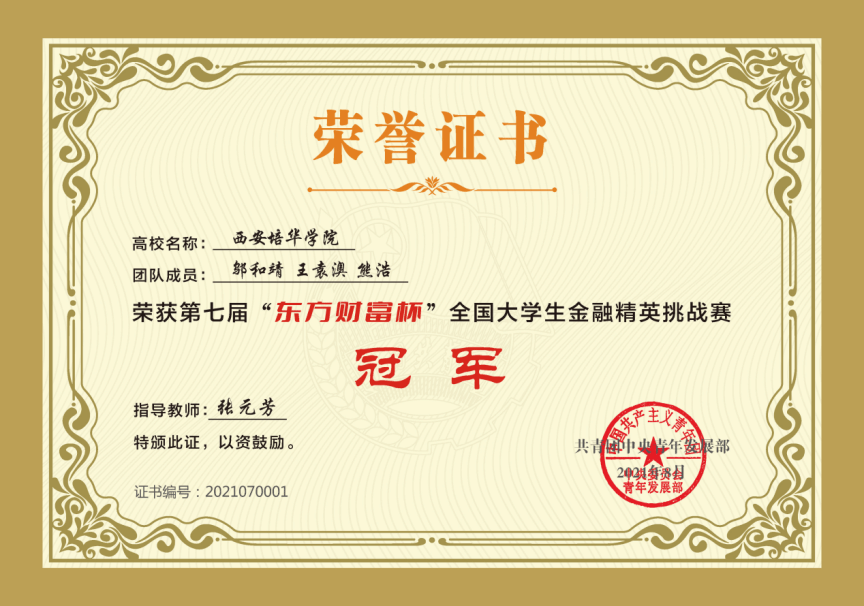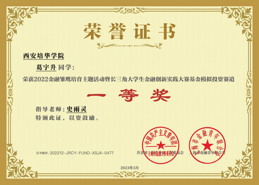 庄立宁,男,2018至2022年在西安培华学院金融工程专业攻读本科,2022年7月毕业。目前研究生就读于湖南科技大学应用经济学专业。在校期间,荣获多项荣誉,2021年获国家奖学金,2022年被评为省级优秀毕业生。