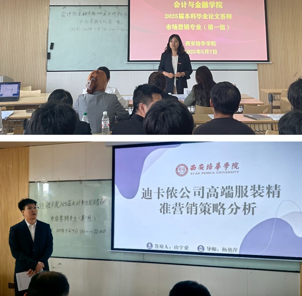市场营销专业2025届毕业论文答辩于5月7日在博远楼2212教室顺利举行。此次答辩共有 55 名学生参与,同时邀请了专业督导刘心占、冯芙蓉老师到场,对答辩过程进行全面监督与指导。