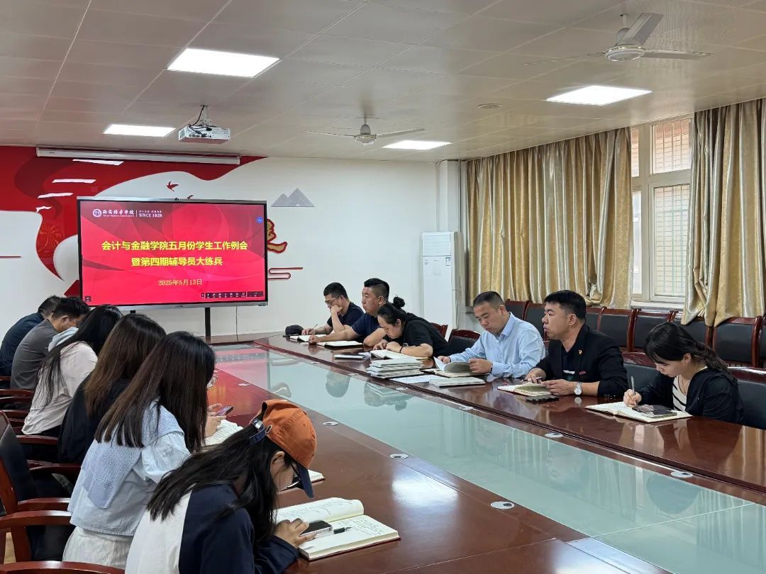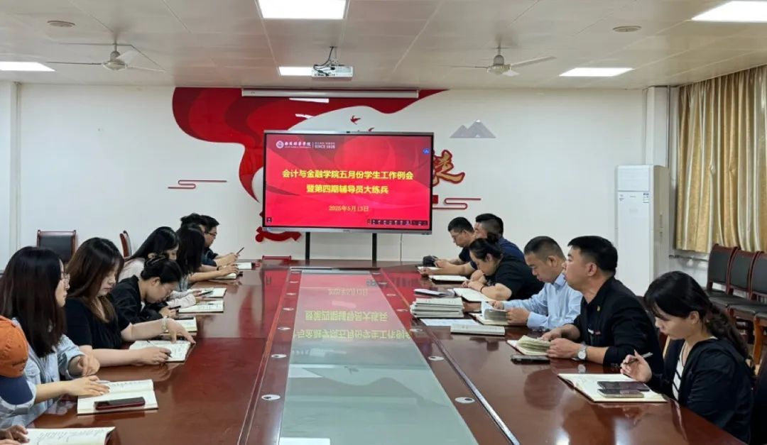 2025年5月13日上午9时,会计与金融学院在2115会议室召开五月学生工作例会暨第四期辅导员“大练兵”专题会议。本次会议围绕“安全为先、精准管理、提质增效”的工作思路,结合近期出现的工作漏洞进行复盘分析从五个维度展开深入研讨,为新阶段学生工作指明方向。