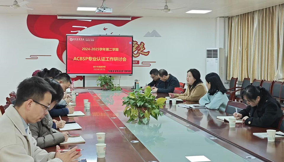 为全面加快专业认证工作进程,2025年3月7日(星期五)14:30-15:30,会计与金融学院在博远楼2115会议室召开2024-2025-2学期第一次ACBSP专业认证工作会议。新任院长蔡敬梅教授,教学副院长兼ACBSP专业认证执行委员会主任孟君教授,专业认证执行委员会副主任覃忠教授及ACBSP专业认证工作办公室成员老师参会。