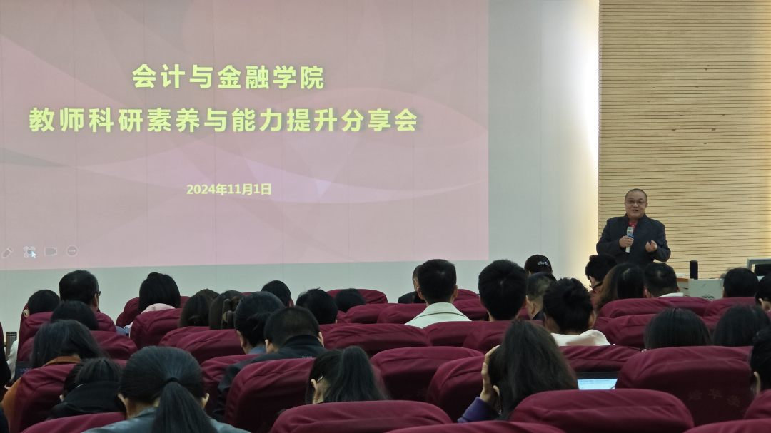 为了进一步提升会计与金融学院教师的科研能力和项目申报质量,2024年11月1日下午14:30学院在J201教室举办了以“如何获准国家社科基金项目”为主题的科研培训会。此次培训旨在通过朱利民教授的指导和经验分享,帮助教师们更好地理解和掌握国家社科基金项目的申报技巧和要求,为即将到来的2025年度国家社科基金项目申报工作做好充分准备。