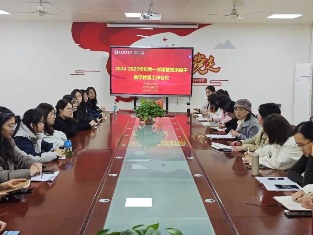 为促进我院教学质量和教学管理水平的不断提高,全面掌握上半学期教学动态,及时发现和解决教学中的问题,有效地监控和评价教学运行质量,管理系于2024年11月1日中午,在博远楼2115会议室召开了“2024-2025学年第一学期管理系期中教学检查工作会议”。出席此次会议的有会计与金融学院教学副院长孟君教授及财务管理、人力资源、资产评估三个专业全体教师与学生代表。