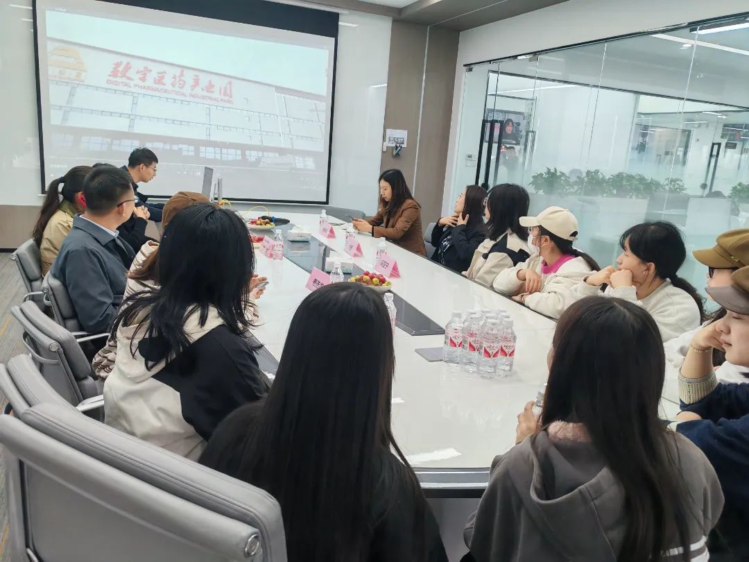 陕西伟业医药有限公司人力资源部校企合作经理郭婷婷热情接待了到访师生。郭经理对企业所在的陕西数字医药产业园和陕西伟业医药有限公司进行介绍,对于产业园的企业构成、占地面积、合作伙伴、公司的发展历程、现状以及公司主营产品等内容进行详细讲解,让学生们对企业有了初步的了解。最后带领学生们参观公司的办公区域和就餐食堂,使学生们对实习环境有了直观的认识。