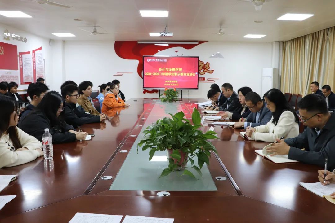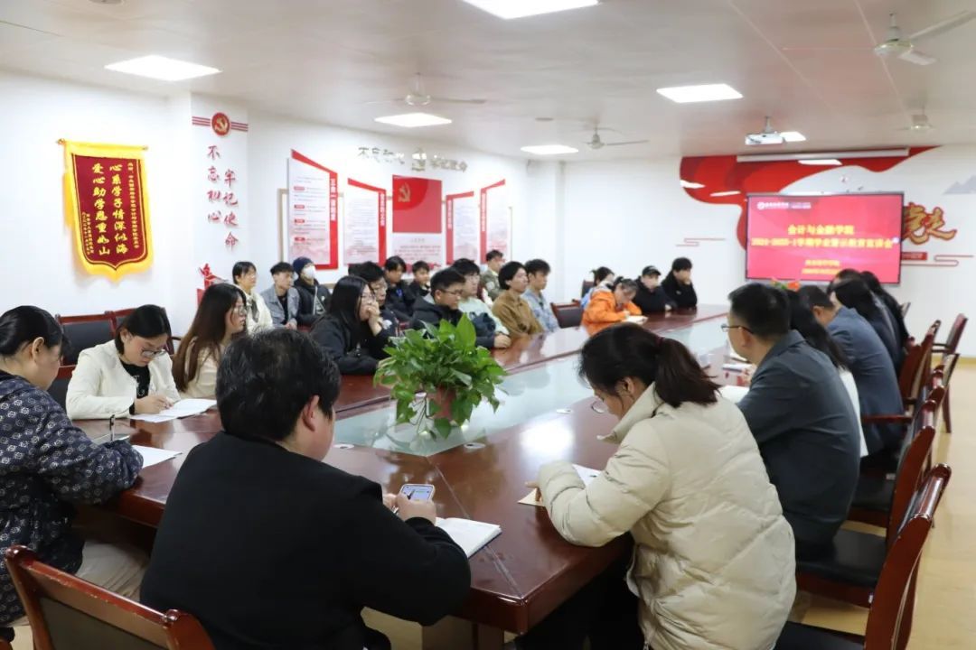 2024年10月23日,会计与金融学院成功召开2024-2025-1学期学业警示教育宣讲会,旨在进一步加强学风建设,帮助同学们明确学习目标,提高学生的学习意识,引导学生正视学业问题,本次宣讲会由学生素质发展教研室主任杨卫莉老师主持,教学副院长孟君教授、行政副院长刘斌,学院党委副书记高乐,学院学籍干事、学业导师等多位教师出席,部分学业预警学生代表积极参与。