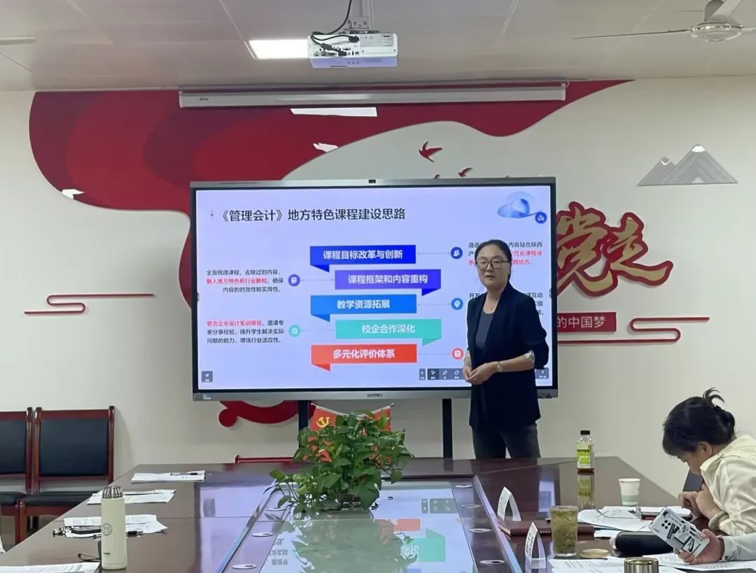 为进一步强化学校“应用型、地方性”的办学定位,促进高等教育优质资源培育,更好地服务地方经济社会发展,学院决定组织开展地方特色课程立项建设评审工作,2024年10月16日(星期三)下午14:30-17:00,会计与金融学院在博远楼2115会议室召开“地方特色课程立项评审会”。会计与金融学院院长赵选民,教学副院长孟君,各系主任、专业带头人及部分骨干教师出席本次会议。会议由会计与金融学院副院长孟君主持。