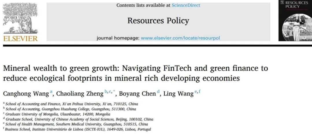 2024年5月,西安培华学院会计与金融学院王仓红博士作为第一作者,学校作为第一署名单位的研究成果Mineral wealth to green growth: Navigating FinTech and green ffnance to reduce ecological footprints in mineral rich developing economies,在SSCI收录期刊Resources Policy发表。该期刊创办于1974年,致力于研究资源的开采、生产和利用中的经济与政策问题,是一本被Web of Science收录的国际知名期刊,位列JCR分区Q1,中科院分区二区Top刊,2024年影响因子10.20。
