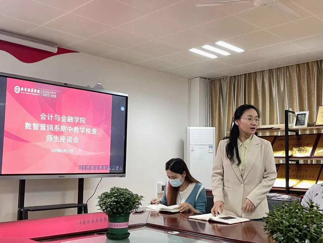 为了解本学期教学动态,监控教学质量和教学计划的有效运行,为后期教学工作提供依据和方向,保证专业教学目标的达成度。2023年5月31日中午会计与金融学院数智营销系在2115会议室召开师生座谈会,会议由市场营销专业吴振荣老师主持,数智营销系全体教师及市场营销、电子商务专业部分学生代表参加了本次会议。