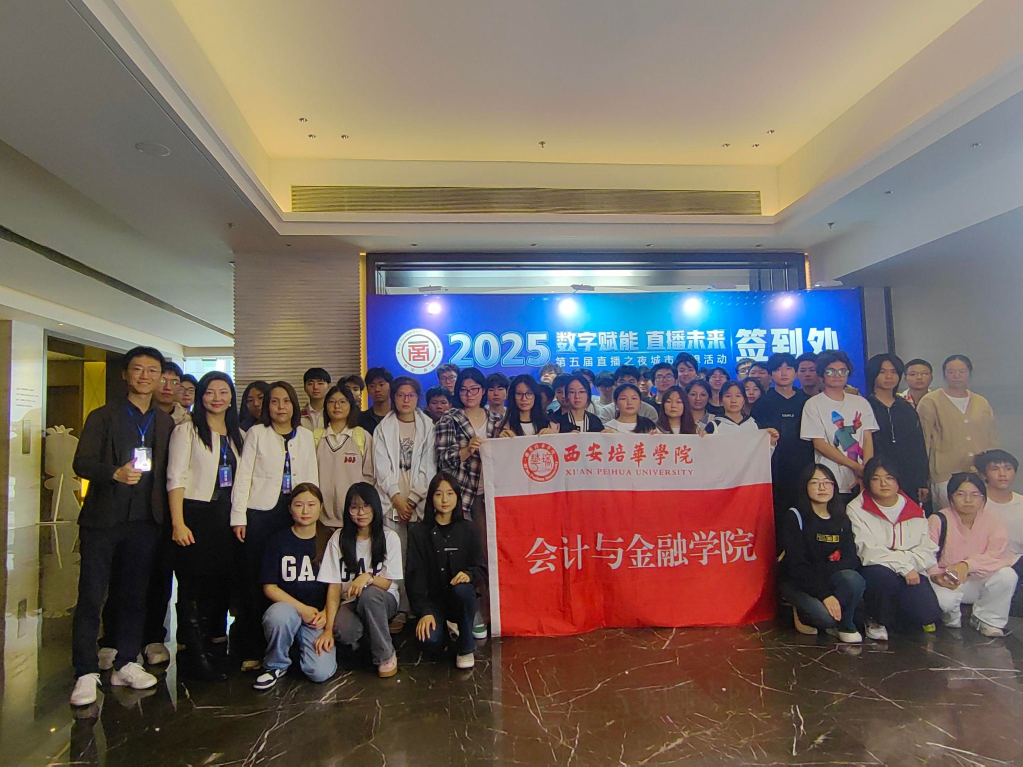 2025年10月15日14:00,会计与金融学院数智经济系2024级和2025级电子商务专业全体学生在电子商务专业带头人王艳教授、石妍老师和宋嘉豪老师的带领下,参加了第五届直播之夜城市梦想活动。该活动由西安市商务局和西安市电子商务协会组织,以“数字赋能 直播未来”为主题,通过政校企协同创新模式,旨在促进直播电商与区域经济深度融合,为电子商务专业学生提供沉浸式行业认知平台。