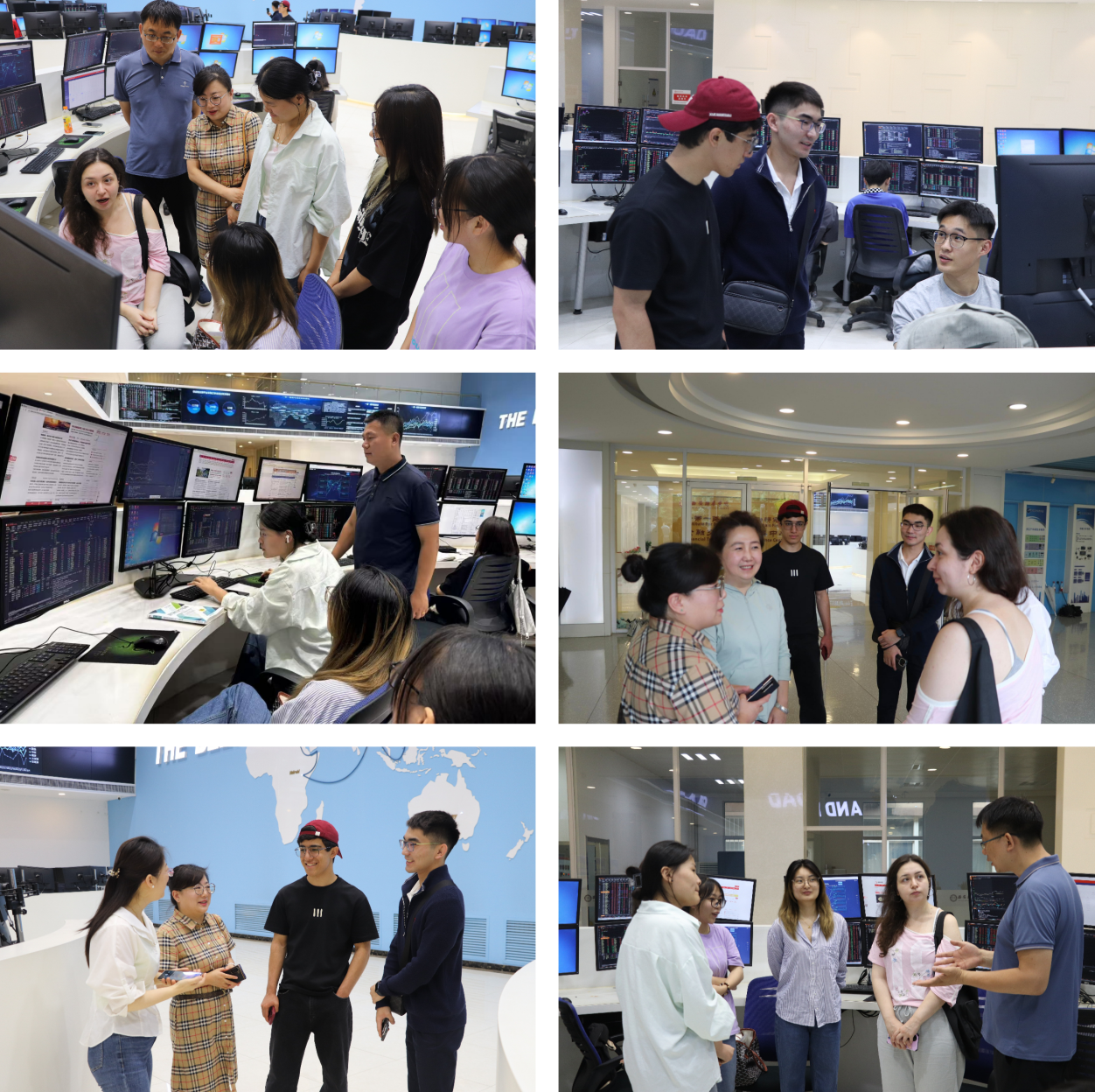 随后,导师们来到了云财务交易中心实训室,对学生们的实践操作进行指导并与学院主管教学院长孟君教授及专业教师进行实训模块交流。在模拟交易环境中,导师们针对学生们在交易策略制定、风险控制等方面的问题,给予了专业的建议和详细的解答。通过现场演示和一对一指导,学生们对金融交易的实际操作有了更深入地理解,实践能力得到了有效提升。