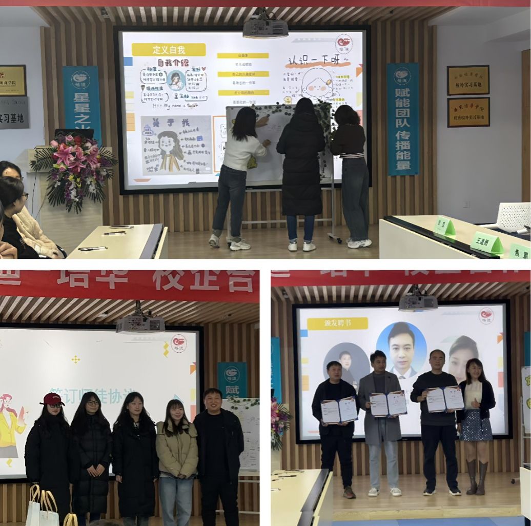 首先举行迎新仪式,学生们正式开启专业实习之旅。此次仪式内容丰富,包括发放入职礼包、团队游戏、拜师仪式、签订实习协议、赠送小礼品和颁发企业导师证书等环节,旨在帮助学生顺利过渡到职场环境。这些活动加深了学生们对团队合作的理解,也让学生认识到尊师重教的重要性。