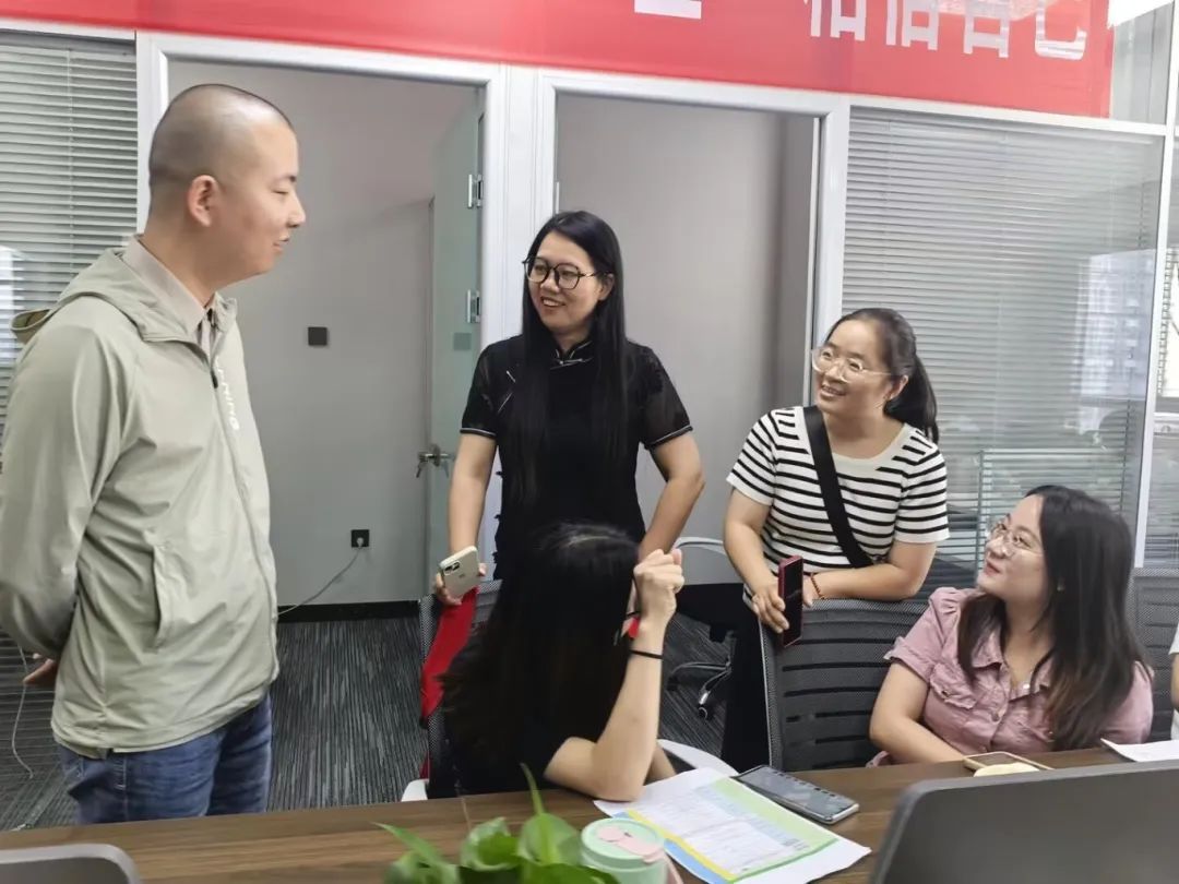 仁名扬(陕西)有限公司高文轩总经理对到访的老师们表示欢迎,随后带领江凤香、王芳、浮永梅、谷萍和张婉金等5位老师来到学生们工作环境进行参观,5位老师也分别与其指导学生进行沟通和交流,了解学生 在实习工作中的成效和困难,关心学生们对实习工作的适应程度,在交流中,多数学生表达了自己在工作中的成长和进步,同时也坦诚道明在工作中遇到的困难和障碍,老师们在了解到学生的实际情况后,还是很欣喜看到学生的成长。