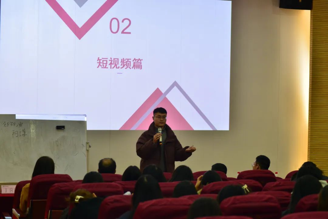 为促进市场营销、电子商务专业应用型人才培养,西安培华学院会计与金融学院数智营销系于2023年12月5日下午4点在博远楼J201成功举办了以"新媒体运营技巧及职业规划--企业家进课堂"为主题的讲座,主讲人为陕西念雷知一电子商务有限公司商务总监——王唯霖。念雷知一总经理杜昌峻带领公司相关工作人员共同助力此次讲座,本次讲座不仅深入探讨电商新兴业态的发展趋势、岗位需求和直播带货实时数据,而且聚焦电商直播领域,为在校师生提供了更为全面深刻的行业洞察。此次讲座由会计与金融学院丁阳副院长、数智营销系李亚子主任以及全体教师与电子商务、市场营销学生共同参与一起探究电商新趋势。