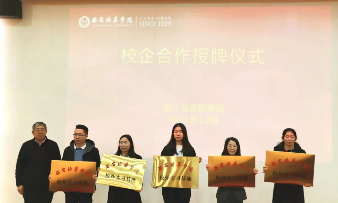 为实现企业主体、人才主力、市场主导和精准就业,深化校企合作,共同搭建就业平台,进一步促进高等院校与产业发展相互融通。西安培华学院会计与金融学院于2021年12月1日10:30分在博远楼J202教室举办“校企合作授牌仪式”。参加本次授牌仪式的有招生与就业指导中心主任鲍伟、会计与金融学院院长赵选民、党委书记兼行政副院长史立军、办公室主任周嫚以及各企业代表。本次会议由院长助理韩建军主持。