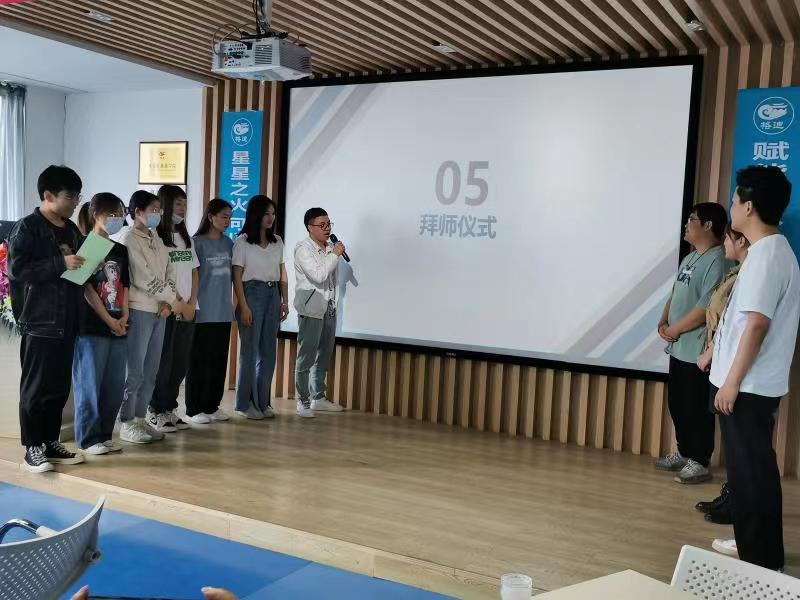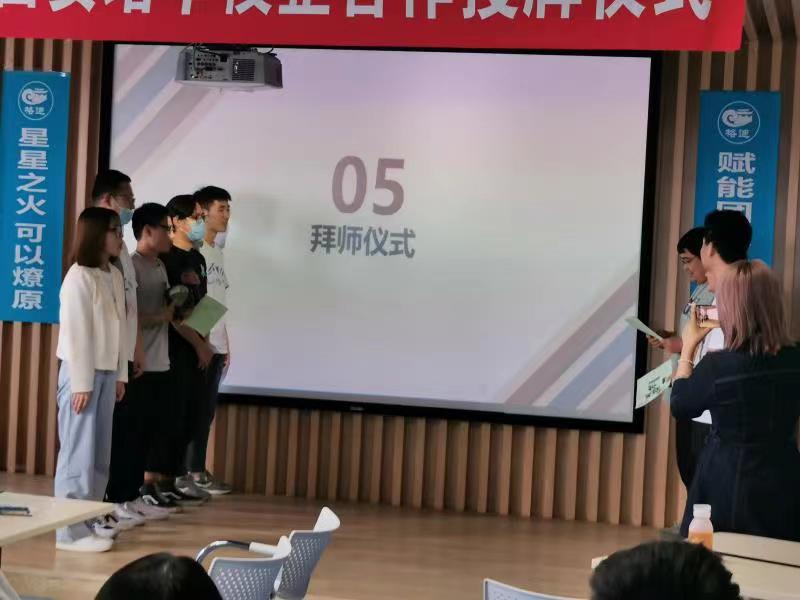 校企合作授牌仪式后,目前在公司实习的47名同学举行了庄严的拜师仪式;西安格迪公司为我院学生设置了企业导师,根据导师的个人业务水平和能力,将47位同学分成六个小组进行实习锻炼。企业导师宣读了师傅承诺,同学们分小组上台,向师父呈拜师帖、鞠躬行拜师礼,为师父奉上拜师礼物,表达对师父无限的真诚和感恩之意。