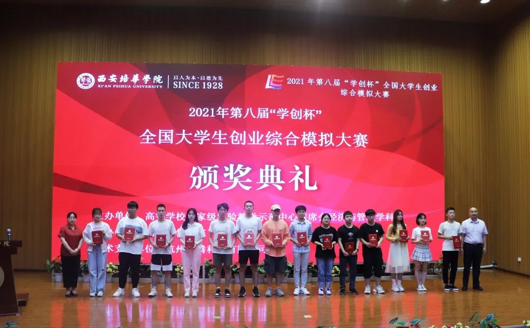 大赛结束后,于下午6:30在维之图书馆报告厅举行了赛事颁奖典礼。西安培华学院、陕西职业技术学院、西安建筑科技大学等8所高校获得优秀组织奖。陕西国际商贸学院、西安财经大学、西安交通大学城市学院等高校的8支代表队获得主体赛本科组特等奖;西安建筑科技大学、陕西国际商贸学院、陕西科技大学等高校的14支代表队获得主体赛本科组一等奖;西安培华学院、西安信息职业大学、西北农林科技大学等高校的20支代表队获得主体赛本科组二等奖;西安信息职业大学、西安外事学院等高校的3支代表队获得主体赛专科组特等奖;西安培华学院、陕西职业技术学院、西安航空学院等高校的5支代表队获得主体赛专科组一等奖;西安外事学院、西京学院、西安职业技术学院等高校的7支代表队获得主体赛专科组三等奖;西安邮电大学、西安建筑科技大学、陕西科技大学等高校的6支代表队获得专项赛特等奖;西安工程大学、西北政法大学、西安外国语大学等高校的12支代表队获得专项赛一等奖;西安交通大学城市学院、西安工程大学、西安航空学院等高校的18支代表队获得专项赛二等奖。