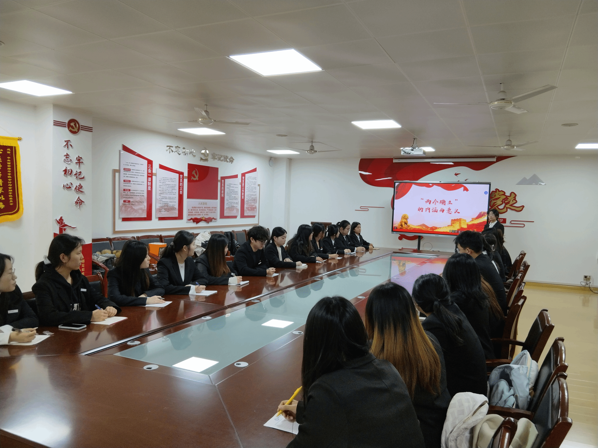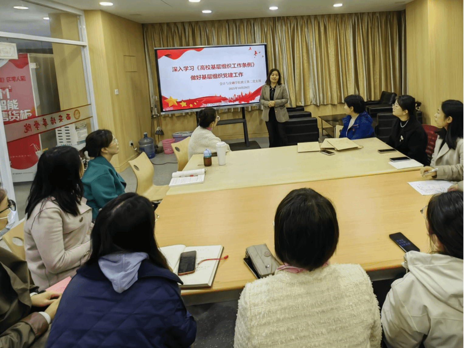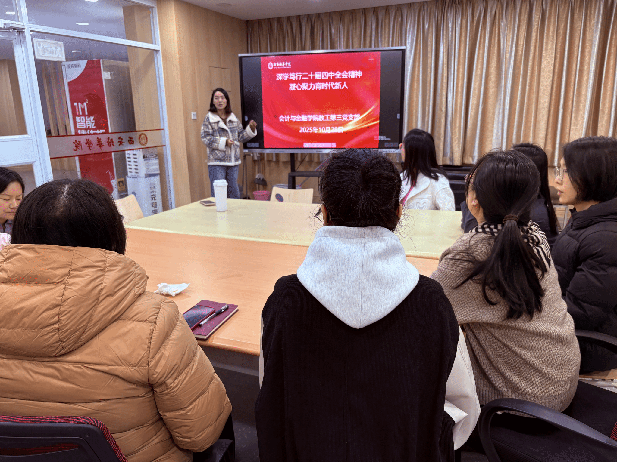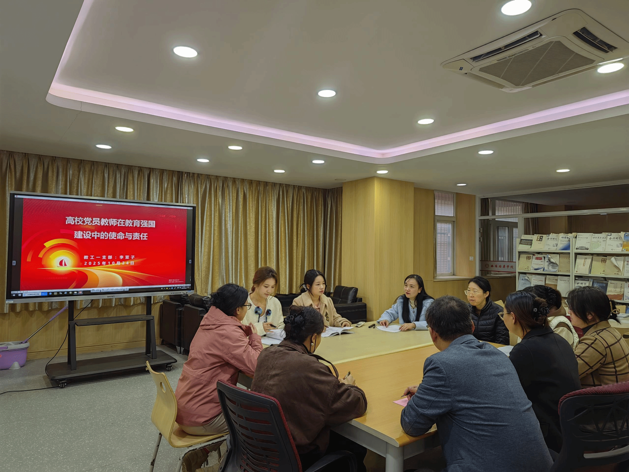 教工第一党支部书记李亚子以《高校党员教师在教育强国建设中的使命与责任》为题,在会计与金融研究中心 2119 会议室为支部成员授课,强调教师党员在教育强国建设中的先锋模范作用。