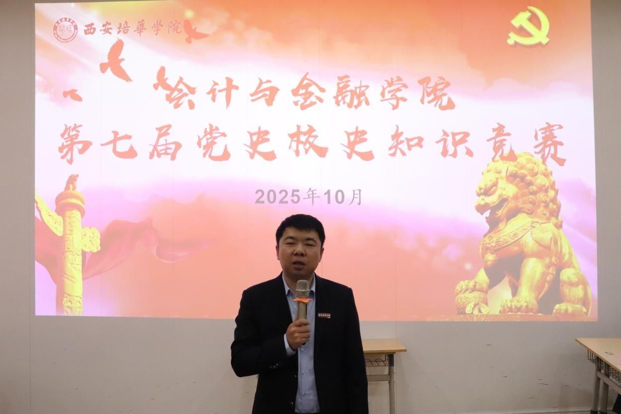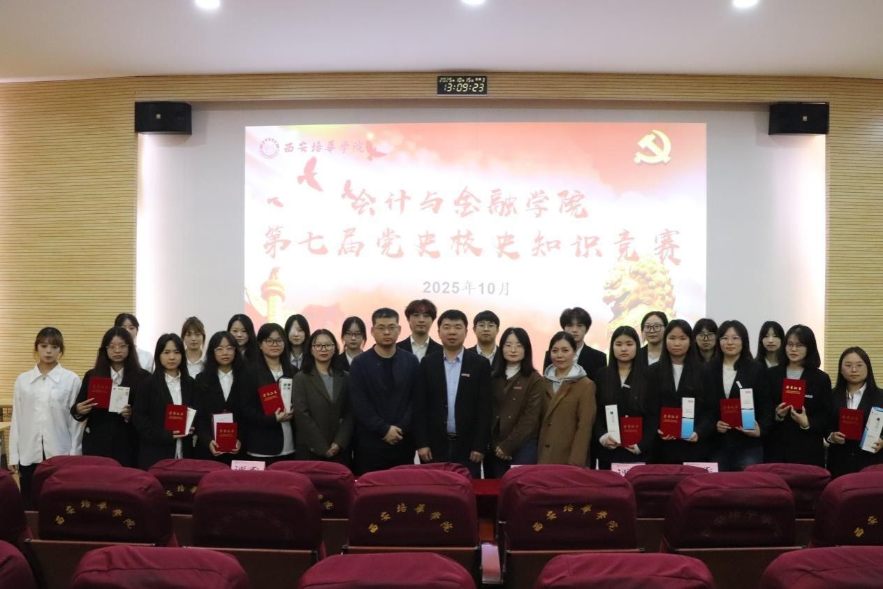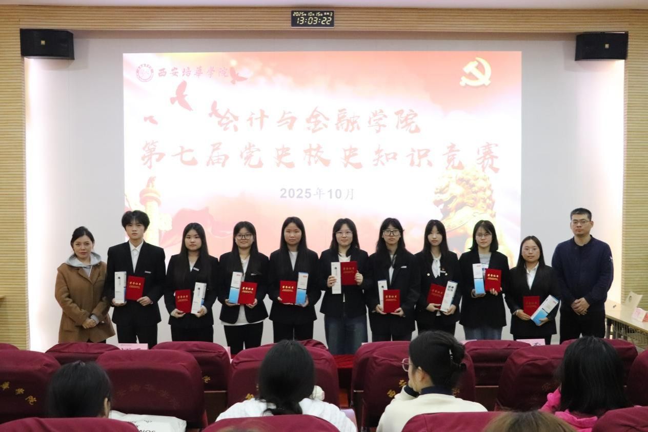 决赛现场氛围热烈。竞赛题型丰富,包含单选、多选、判断三类基础题型,还设置了紧张刺激的抢答环节。内容不仅包括党史中的重大事件、重要理论、伟大精神,还融入了西安培华学院的建校历程、办学特色、杰出校友事迹等校史核心内容。