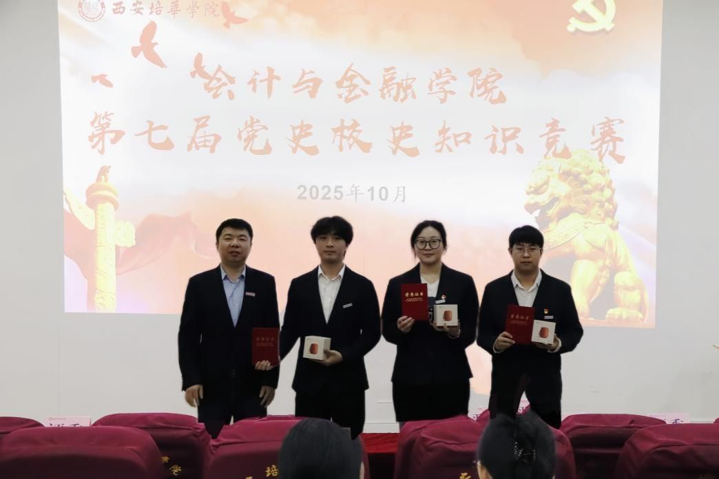 会计与金融学院第七届党史校史知识竞赛在掌声与收获中圆满落幕。最终斩获一等奖的黄博文、范硕、朱学程三位同学,将代表学院出征学校预赛,把赛场燃起的热情带向更高舞台。活动虽短,但“学党史、感党恩、知校史、明校情”的种子已深植心间。相信全体同学必将以此次竞赛为新起点,把爱党爱国爱校的热情转化为勤学善思、知行合一的持久动力,让红色基因薪火相传,让培华精神在新时代绽放更加夺目的光芒。