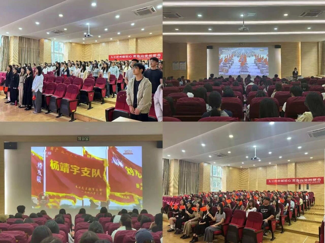 9月3日,我院团员们满怀热忱在J201教室等候抗战胜利80周年阅兵式启幕。当雄壮的《义勇军进行曲》奏响,五星红旗伴随朝阳冉冉升起,全体团员自发起立,神情肃穆行注目礼,胸前团徽与国旗交相辉映,浓厚的爱国情怀在现场激荡。