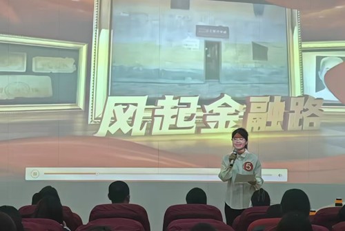 紧接着,选手代表冯小萌目光坚定,语气铿锵地为大家分享红色金融史。她的发言,让在场师生感受到红色金融的厚重魅力,也为大赛注入了更深层的精神内涵。