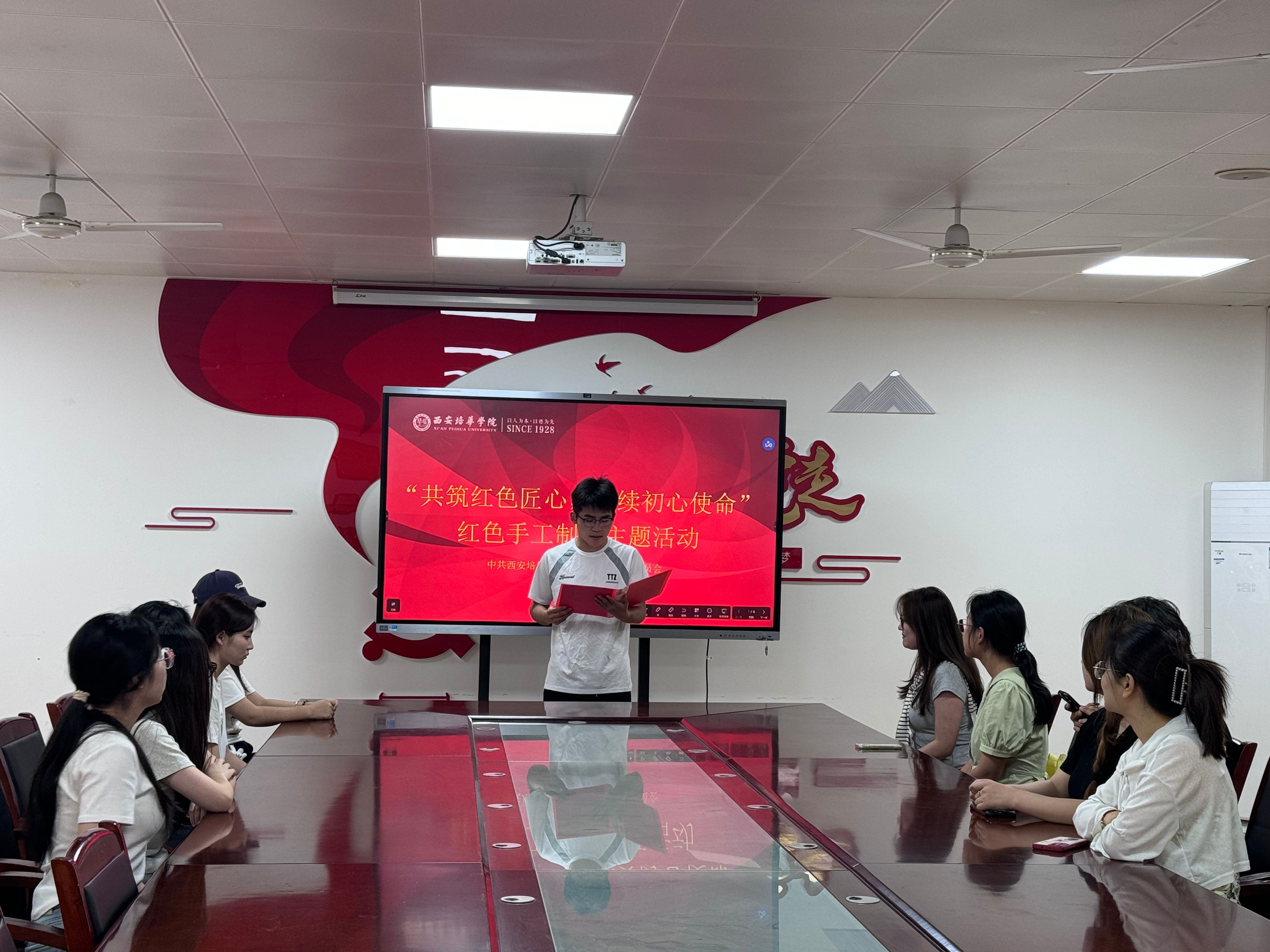 在中国共产党成立104周年之际,为深入贯彻落实党的精神,加强党员思想政治教育,传承和弘扬红色精神,会计与金融学院党委于6月13日12:30,在2115教室开展“共筑红色匠心,赓续初心使命”红色手工制作主题活动。此次活动旨在带领学生党员在光影中回望历史、在故事里感悟精神、在手工间传承匠心,助力红色基因在新时代焕发光芒。