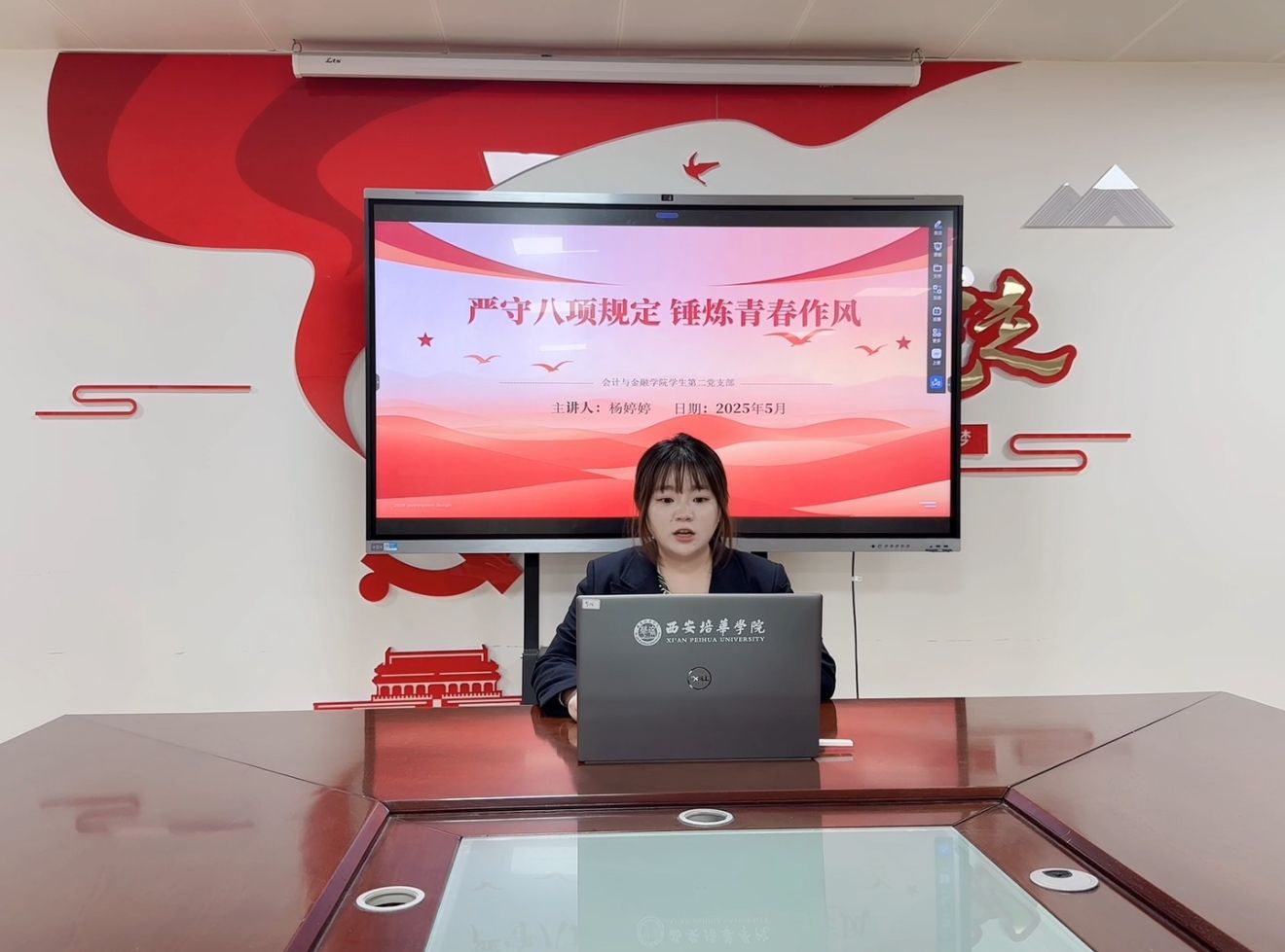 学生第二党支部书记杨婷婷以“严守八项规定,筑牢青春底色—学生党员的作风建设必修课”为题,结合学生党员的实际,强调了作风建设对于学生成长成才的重要意义。