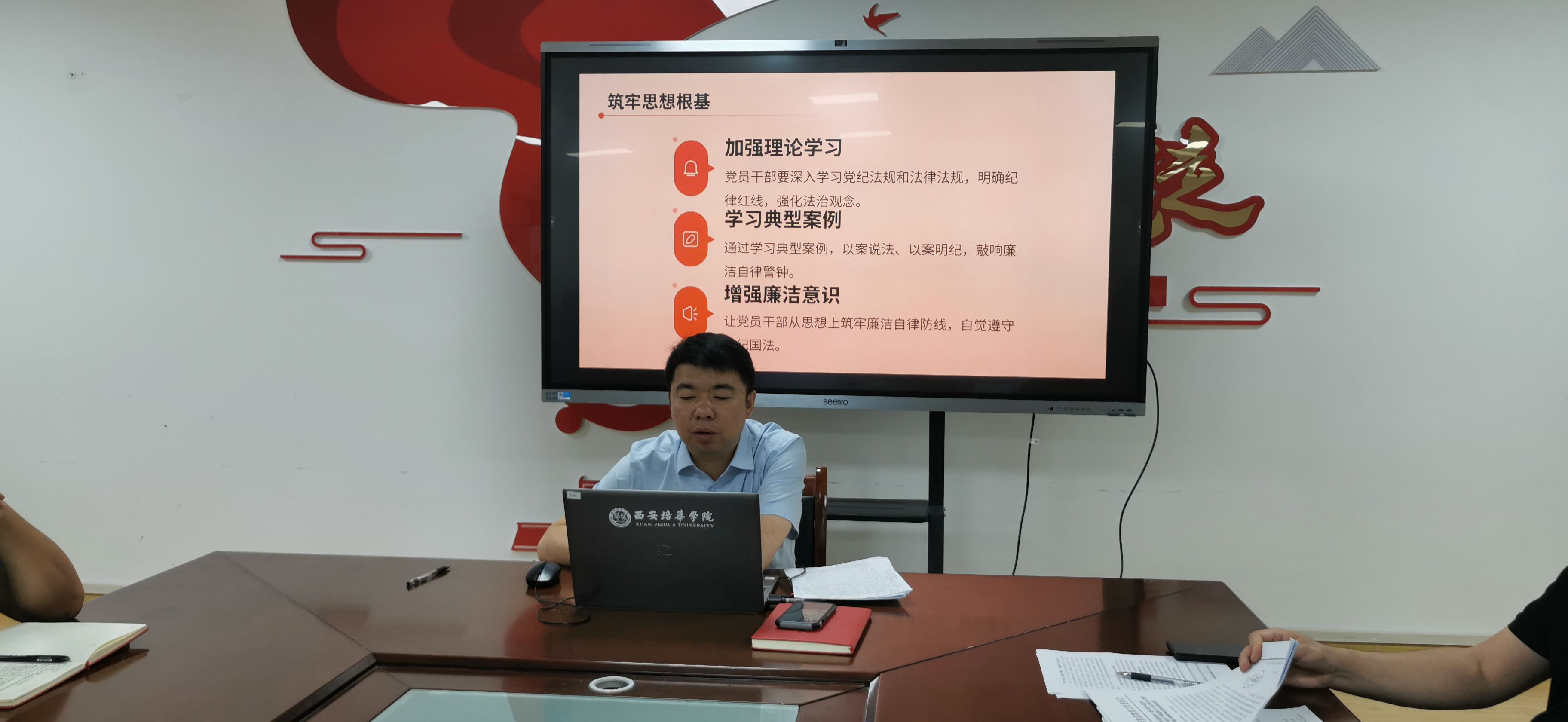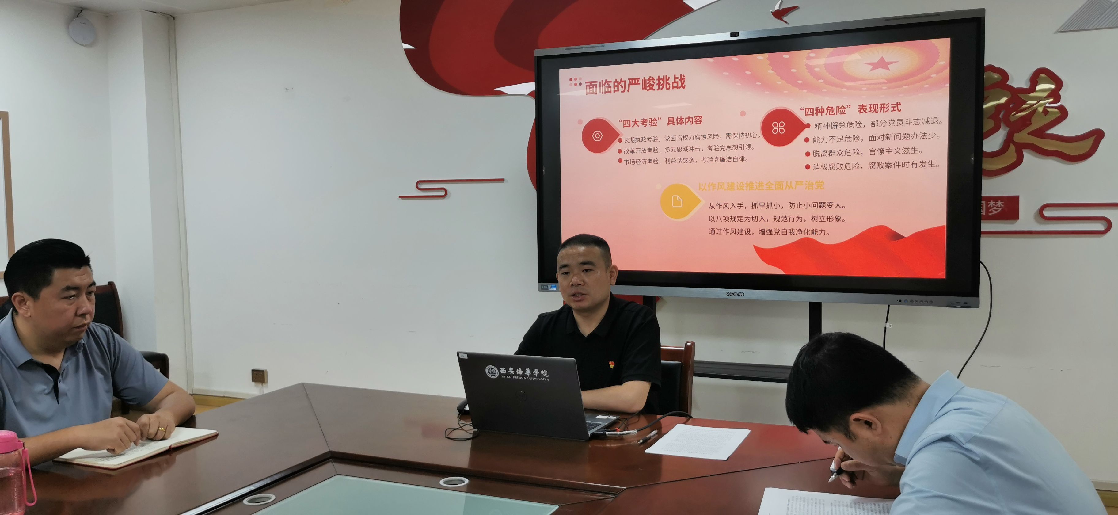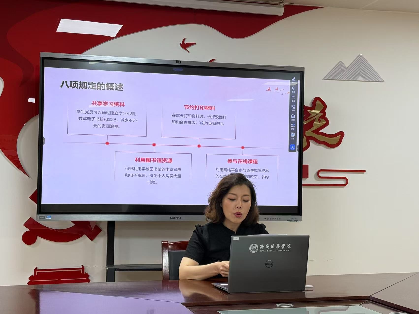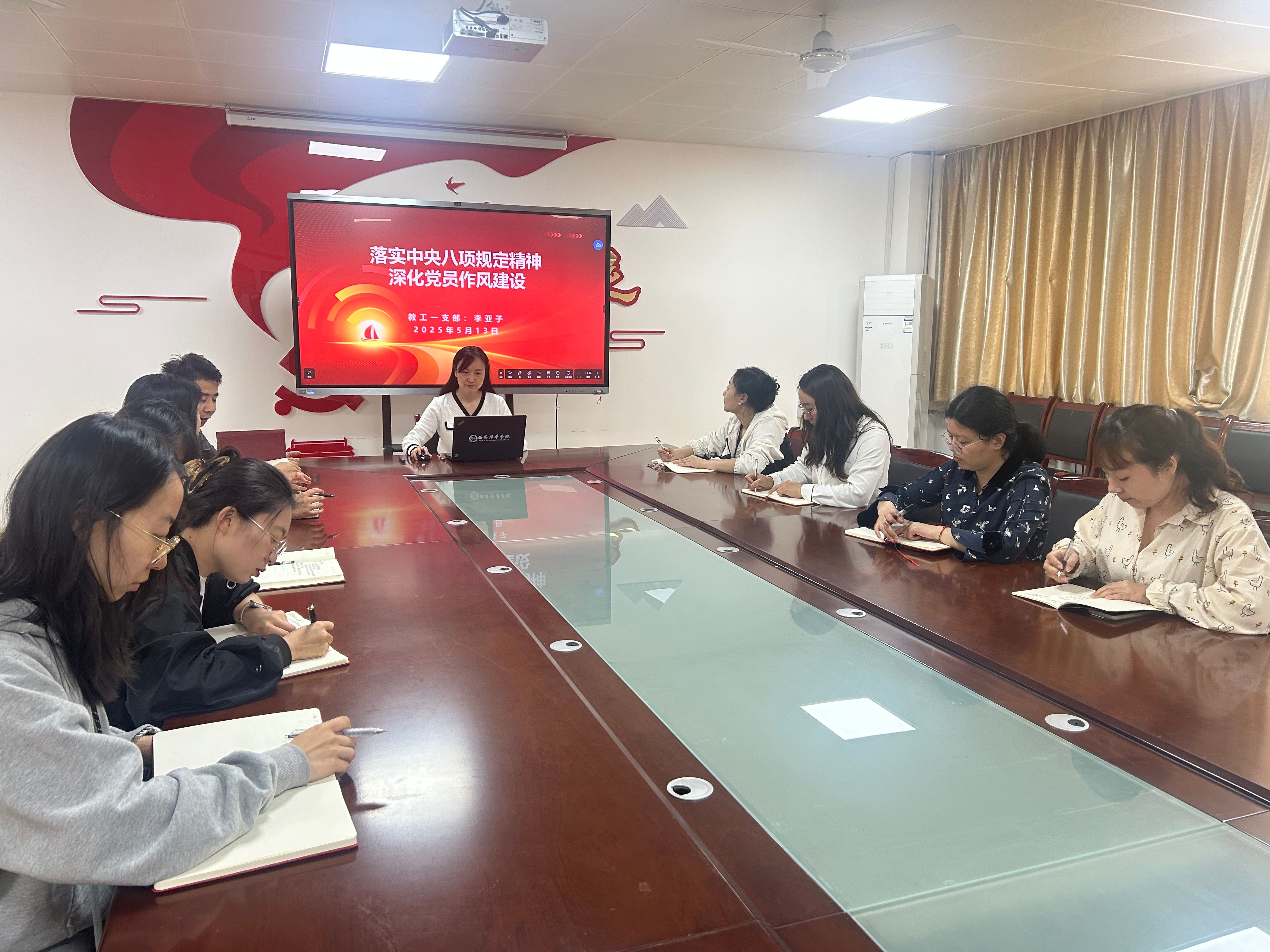教工第三党支部书记段梦娟以“学深悟透八项规定,永葆清正廉洁本色”为题,通过组织支部成员学习相关文件和案例,让大家深刻认识到廉洁自律的重要性,增强了党员的纪律意识和规矩意识。