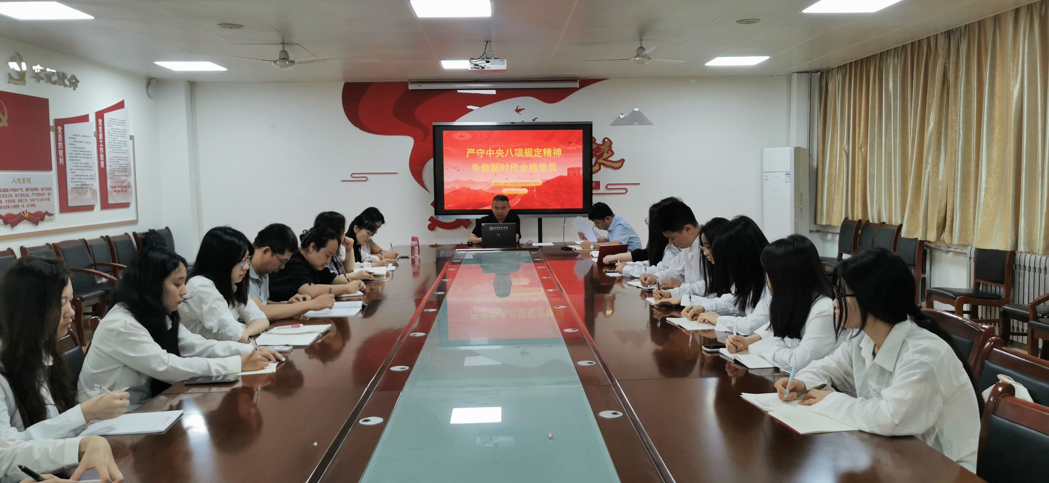 在党课活动中,会计与金融学院党委书记兼行政副院长刘斌以“严守中央八项规定精神,争做新时代合格党员”为主题,为学院中心组成员、各支部书记以及师生党员代表进行了深入讲解。他强调,中央八项规定是新时代党员必须严格遵守的行为准则,是党保持先进性和纯洁性的重要保障。他通过丰富的案例和生动的讲解,引导党员们深刻认识到中央八项规定精神的重要意义,激励大家在日常工作中以更高的标准严格要求自己,争做新时代的合格党员。