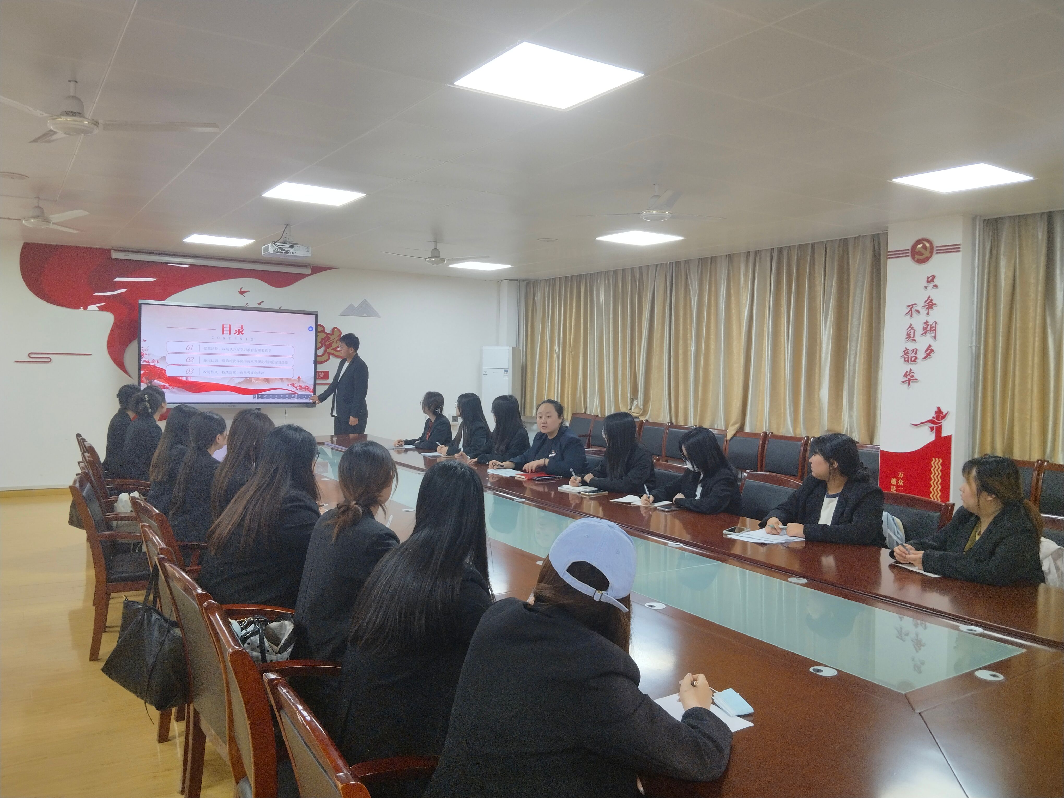 学生第三党支部书记王思思以“深入开展学习教育,持续加强作风建设”为题,通过组织学习和讨论,让学生党员们更加深入地理解中央八项规定精神的内涵。