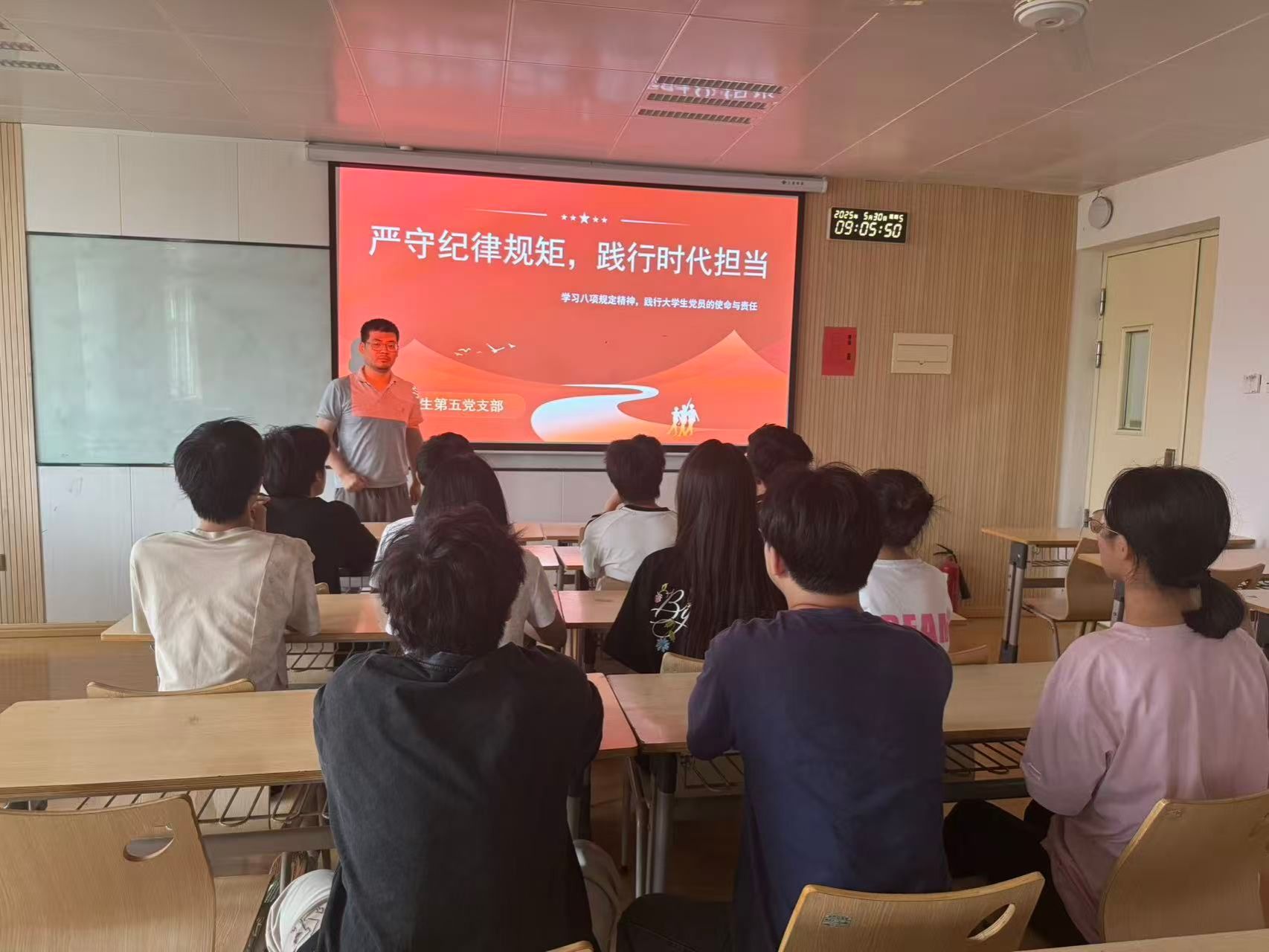 学生各党支部书记也积极行动,为学生党员们带来了内容丰富、形式多样的党课。学生第一党支部书记王迪以“践行中央八项规定,争做基层党员清廉表率”为主题,引导学生党员在日常学习和生活中自觉遵守党的纪律,发挥先锋模范作用。