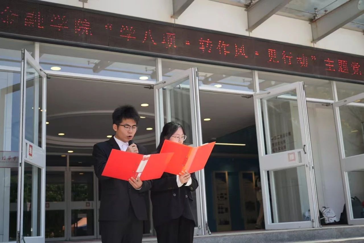 为深入贯彻落实中央八项规定精神,会计与金融学院党委于2025年4月28日上午在博远楼西广场,开展以“学八项·转作风·见行动”为主题的学习教育活动。会计与金融学院党委书记兼行政副院长刘斌、党委副书记高乐、党务行政干事朱梦阳、党务专干孙宝丽、各师生党支部书记及学生党员代表参加了本次活动。