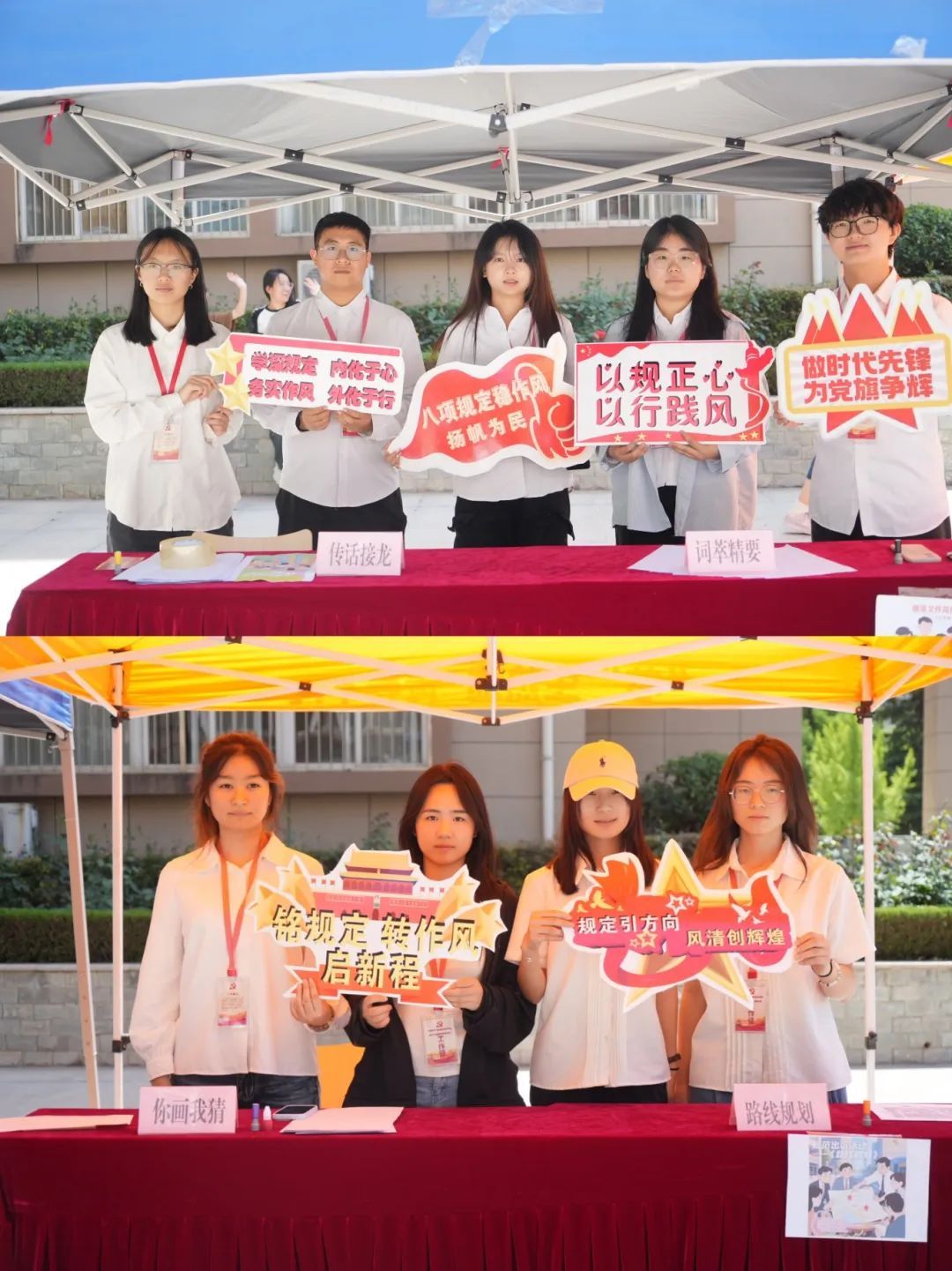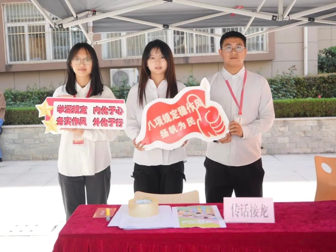该活动通过学做结合的形式,通过精心设计的八项沉浸式体验项目,将八项规定的要求转化为生动的实践。从《传话接龙》的精简会议活动,到《词萃精要》的精简文件简报;从《你画我猜》的改进调查研究,到《路线规划》的规范出访活动;从《安全防线》的改进警卫活动,到《新闻炼题》的改进新闻报道;从《文稿改错》的严格文稿发表,再到《投壶尚俭》的例行勤俭节约,每一个项目都紧密围绕八项规定的核心内容,通过情景化体验、角色扮演等形式,让师生们在互动体验中深化理解、强化认同,切实筑牢纪律防线。