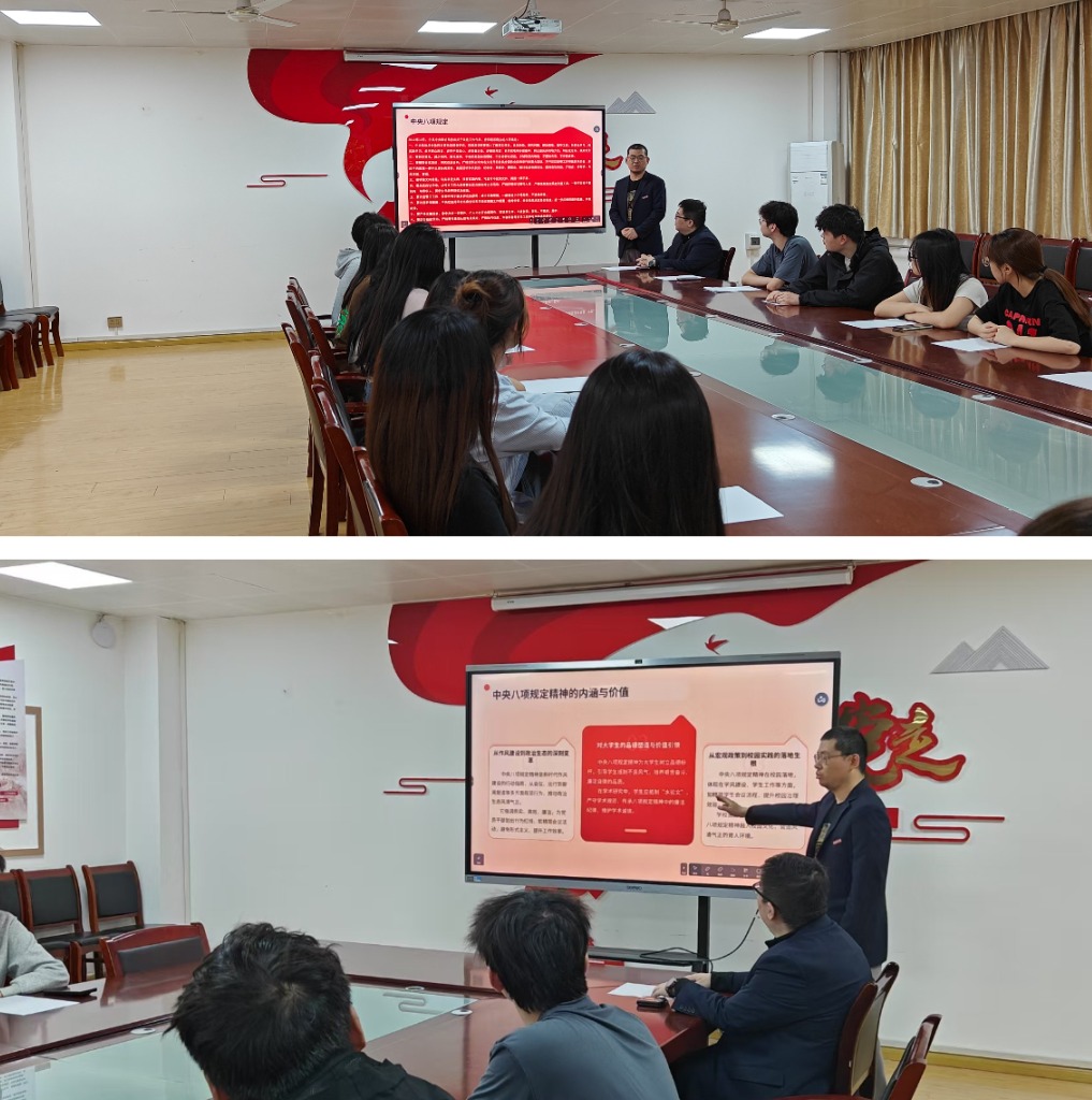 为深入学习贯彻党的纪律要求,强化学生党员作风建设,4 月 9 日,学生第四党支部与第五党支部联合召开中央八项规定精神学习教育会。会议由第四党支部书记张超领学,第五党支部书记乔安结合大学生实际展开实践讨论,两支部党员骨干参会,以学促行推动校园清风建设。