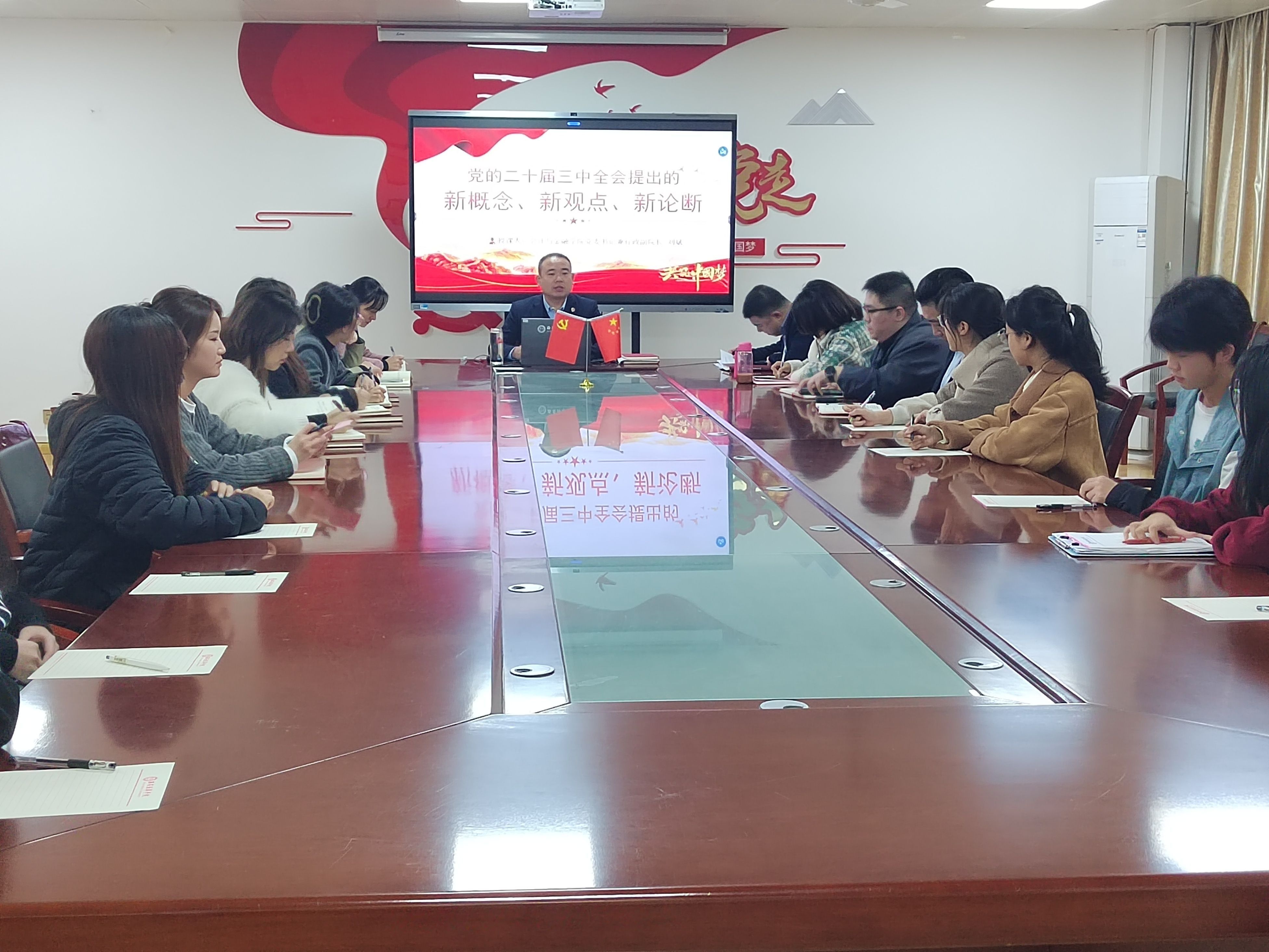 会计与金融学院党委书记兼行政副院长刘斌在博远楼2115会议室,以学习二十届三中全会精神为中心展开,为各支部书记以及师生代表带来了一场深刻的党课。他强调党的二十届三中全会提出的新概念、新观点、新论断。这些内容不仅为我们指明了全面深化改革的方向,更为中国特色社会主义制度的完善和发展提供了理论指导和实践路径。我们要将理论与实践相结合,推动学院各项工作再上新台阶。