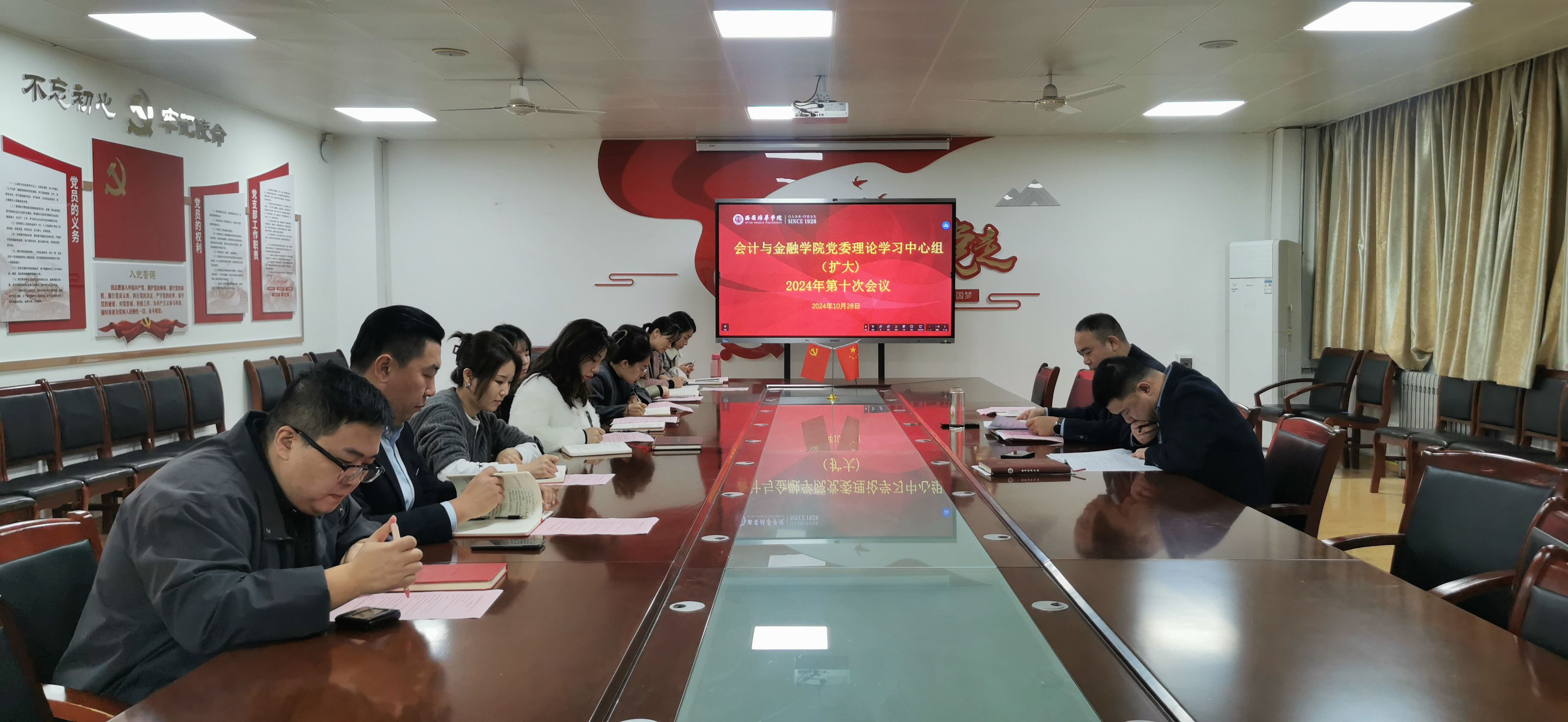 会计与金融学院党委于2024年10月28日14点在2115会议室召开会计与金融学院党委理论学习中心组(扩大)2024年第十次会议。会计与金融学院党委书记兼行政副院长刘斌主持会议,会计与金融学院领导班子、党委理论学习中心组成员参与此次会议。