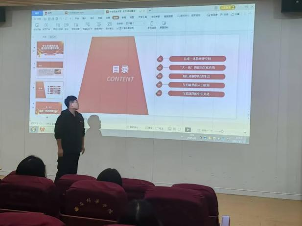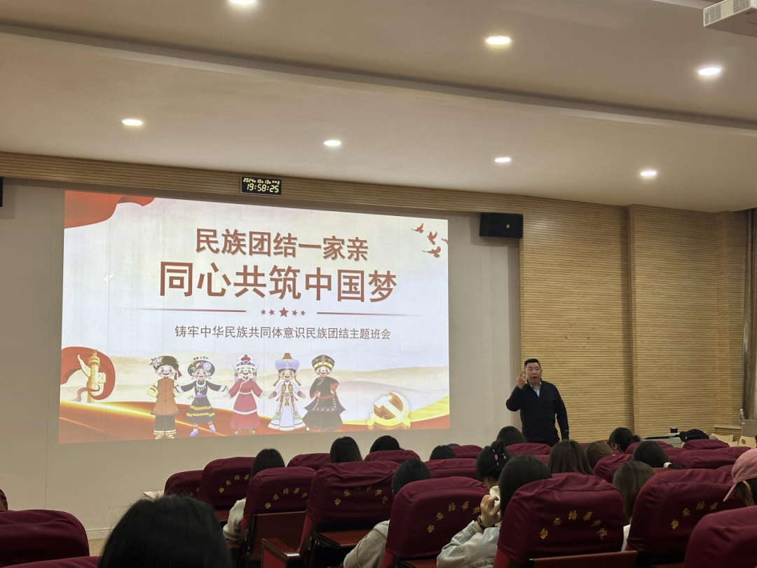 班会上,辅导员通过有关增进中华民族共同体意识教育的纪录片,让同学们直观地感受各民族的文化魅力和团结奋斗的精神。同时,向同学们介绍了中华民族共同体意识的内涵、重要意义、历史发展等内容,使学生认识到各民族长期的历史发展过程,引导学生树立正确的民族观。