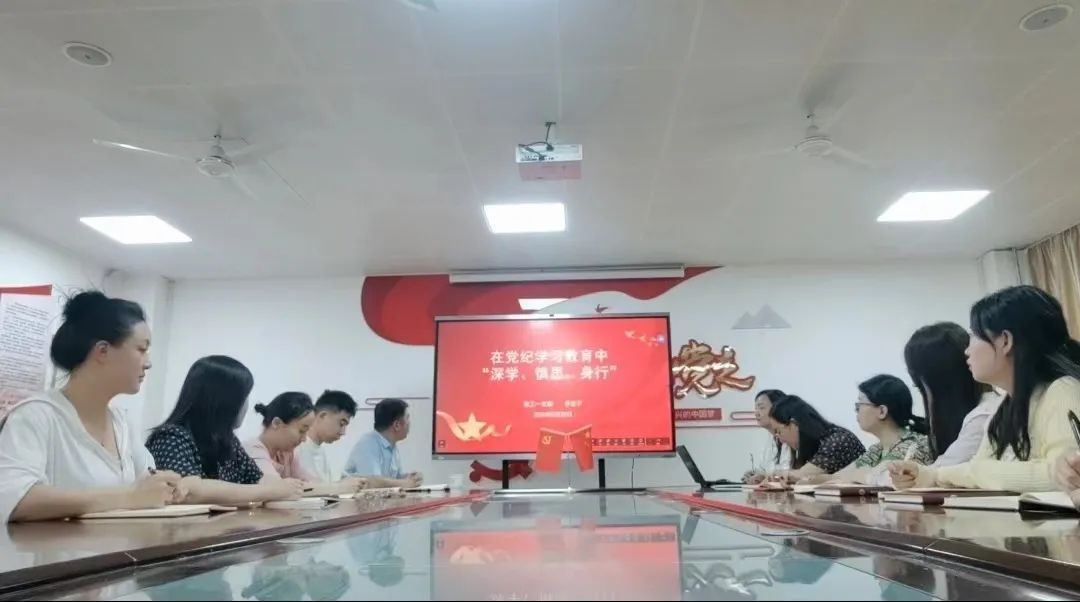 同时,各党支部书记也积极行动起来,开展了形式多样、内涵丰富的党纪主题教育。2024年5月22日上午10:30教工第一党支部全体党员在2115会议室开展以“在党纪学习教育中‘深学、慎思、身行’”主题党课教育活动。教工第一党支部书记李亚子老师深入讲解了党纪学习的重要性,提出党员需深入思考,避免表面化学习,提升教育成效。党员代表朱梦阳、蔡翊老师分享了学习感悟,强调纪律学习是全面从严治党的基础,要弘扬党的光荣传统,强化理想信念。