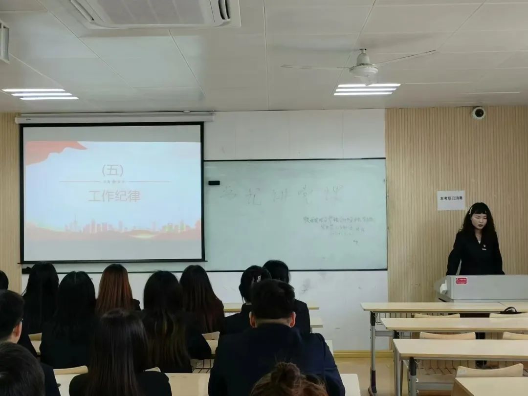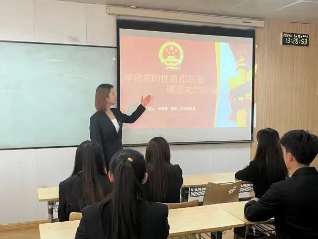 2024年5月22日,会计与金融学院学生第二党支部组织开展了主题为“坚守初心,严明党纪——新时代党员的使命与担当”讲党课活动。学生第二党支部书记杨婷婷老师强调了党纪在党的建设中的核心地位,指出党的纪律是党的生命线,是党的各级组织和全体党员必须遵守的行为准则。加强党纪教育,不仅有利于维护党的团结统一、提高党的执政能力,更是加强党员干部队伍建设的关键环节。通过加强党性修养和纪律意识,确保党员领导干部能够廉洁自律,为党和人民的事业贡献自己的力量。
