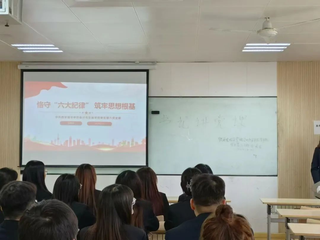 会计与金融学院学生第六党支部于2024年5月22日在博远2214 ,开展了以“恪守‘六大纪律’,筑牢思想根基”为主题的党课活动,旨在加强党员的纪律意识和思想道德建设。她强调了“六大纪律”的重要性,即政治纪律、组织纪律、廉洁纪律、群众纪律、工作纪律和生活纪律,要求党员们在实际工作和生活中严格遵守。此次活动有效提升了党员对党的纪律的认识,增强了遵守纪律的自觉性。党员们表示,将以此为契机,进一步强化纪律意识,确保党的纪律在工作和生活中得到贯彻执行。