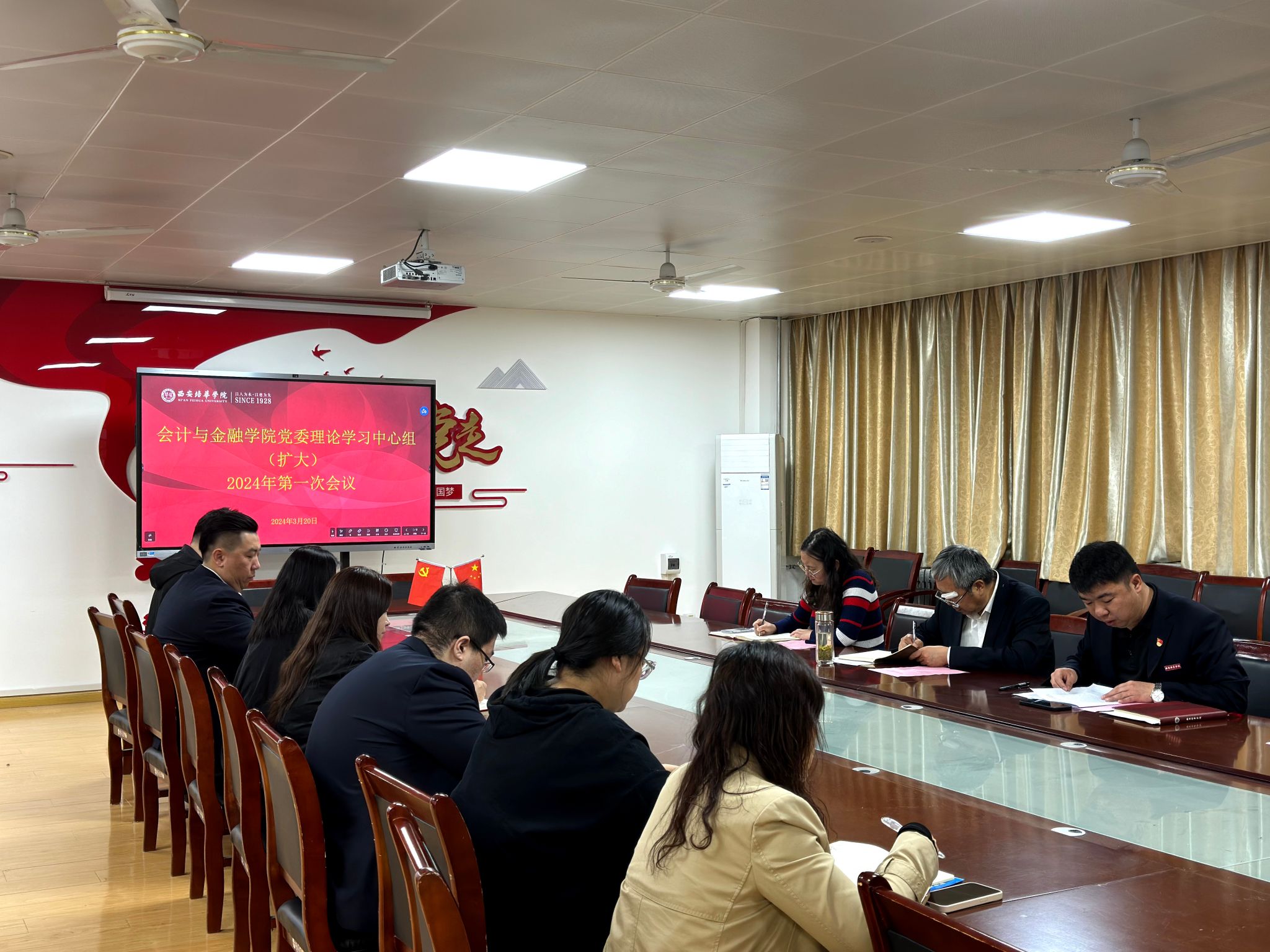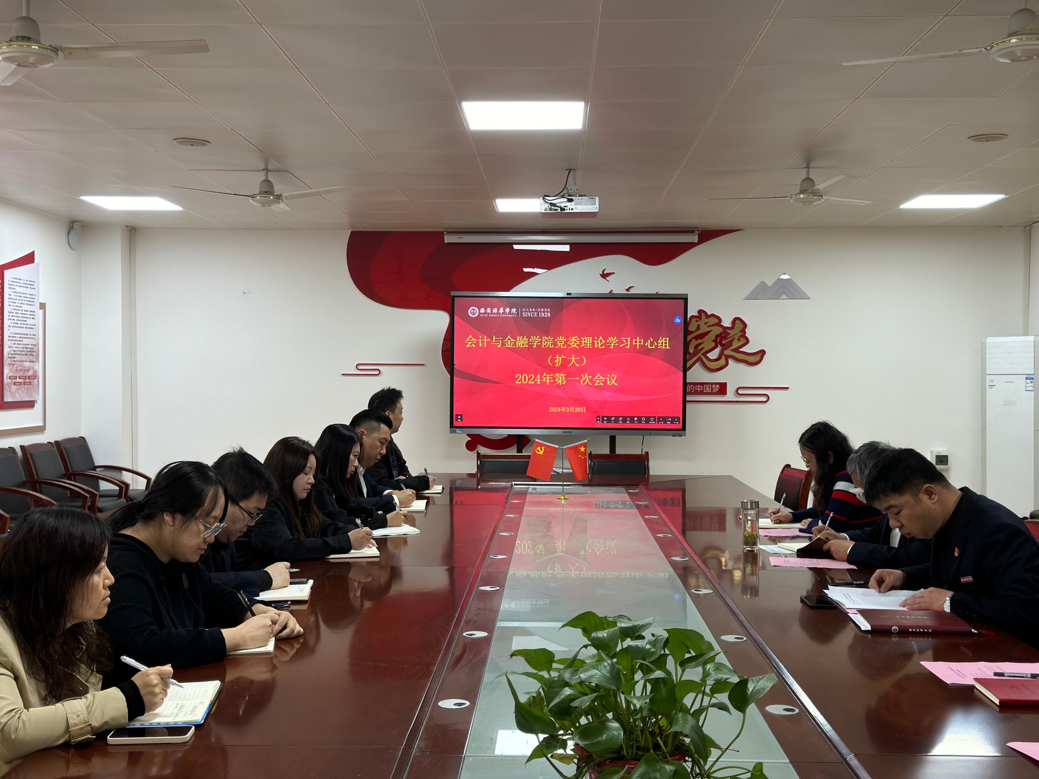 会计与金融学院党委于2024年3月8日在2115会议室召开会计与金融学院党委理论学习中心组(扩大)2024年第一次会议。