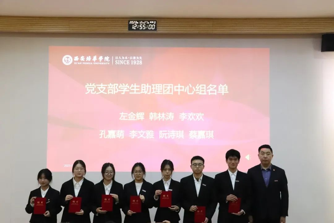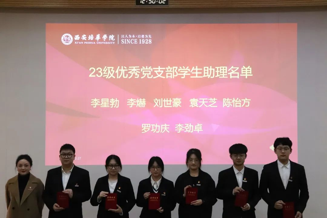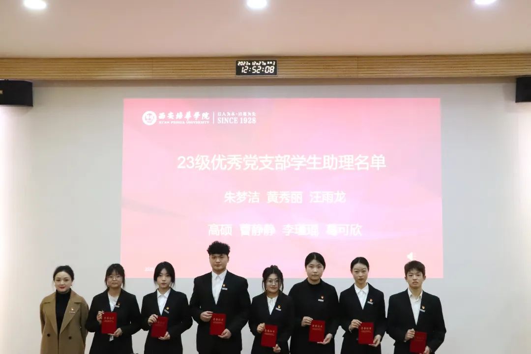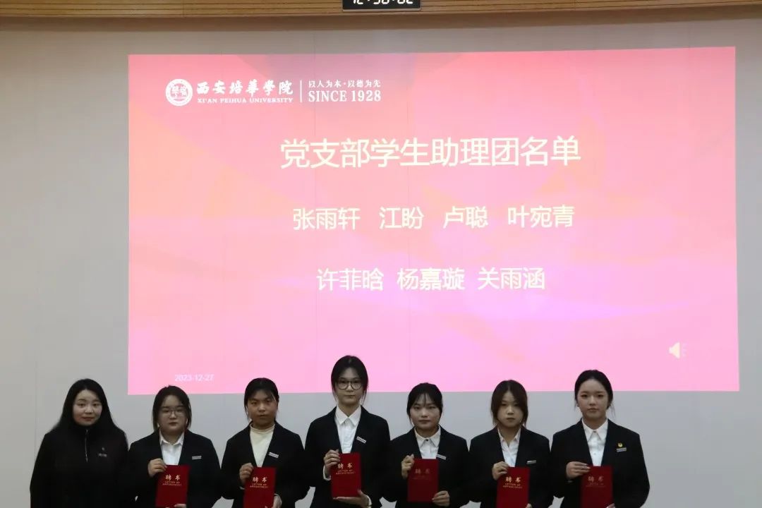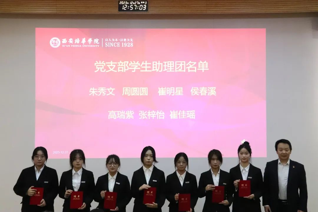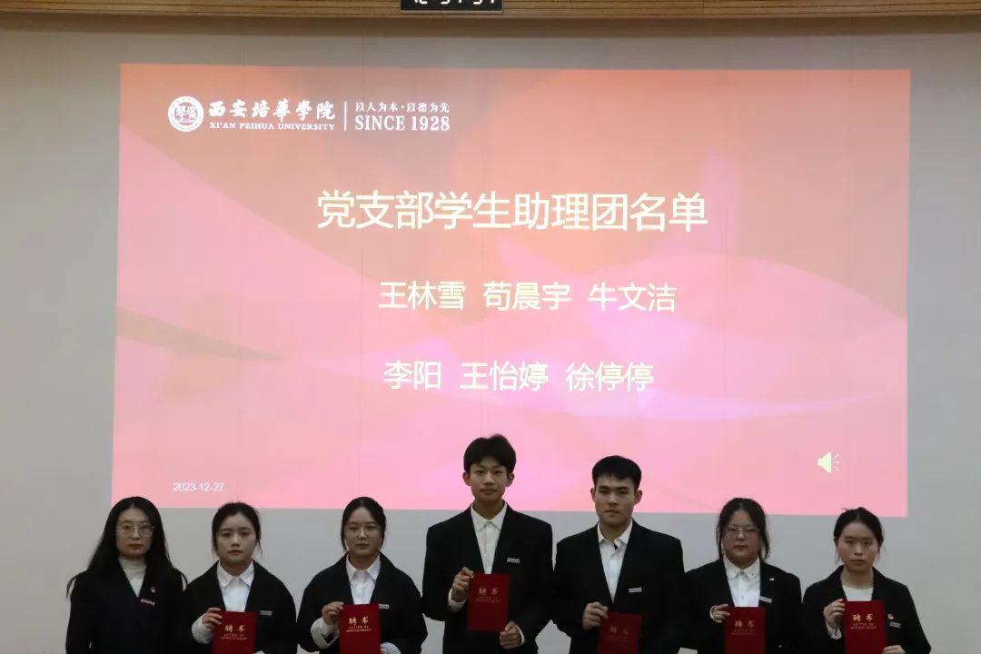 2023年12月27日,西安培华学院会计与金融学院党委表彰暨学生助理团换届大会在博远楼J201教室召开。参会人员有会计与金融学院党委副书记刘斌、党务行政干事朱梦阳、党务专干刘福琴、会计与金融学院党委学生支部书记们及第50期优秀积极分子,会议由学生支部负责人左金辉和张梓怡同学主持。